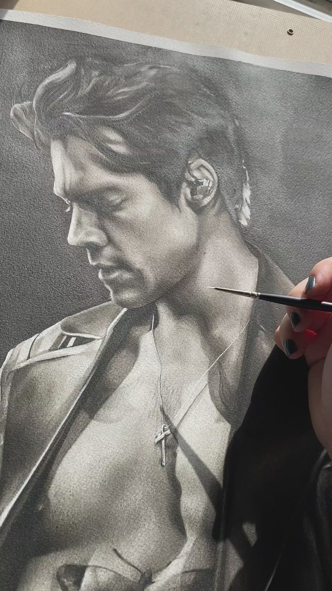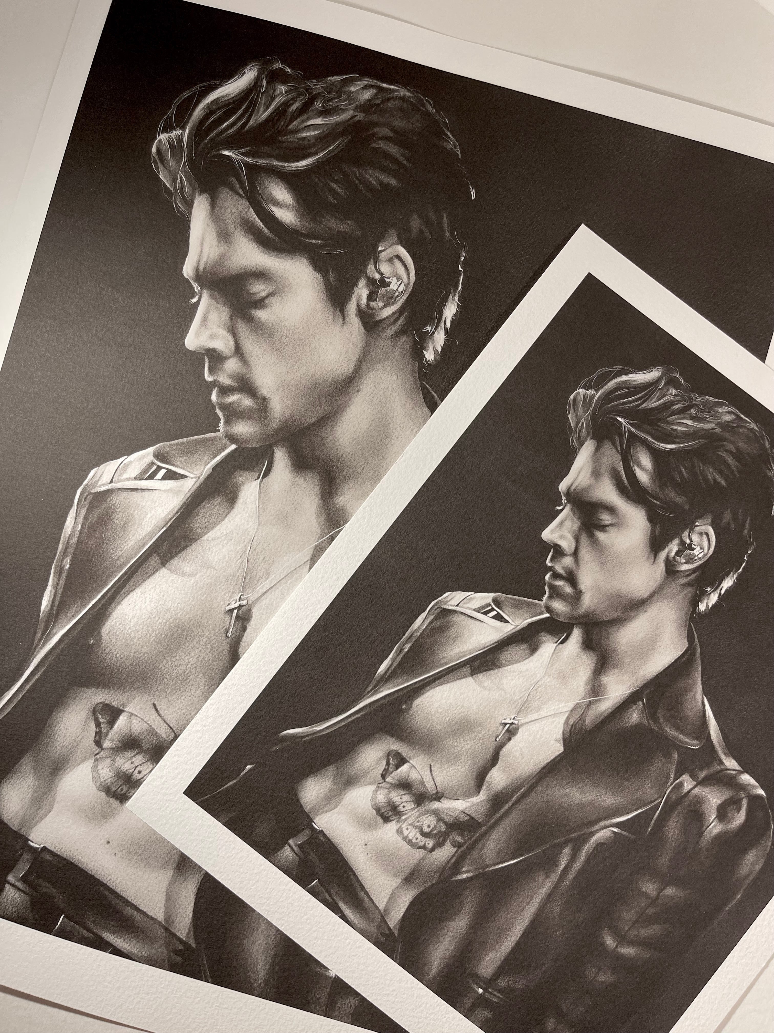 Open edition fine art reproduction of "The GRAMMYs Harry Styles" printed on Somerset Velvet Art Paper with authentic artist signature. Paper feels like watercolor paper, with texture and thickness.