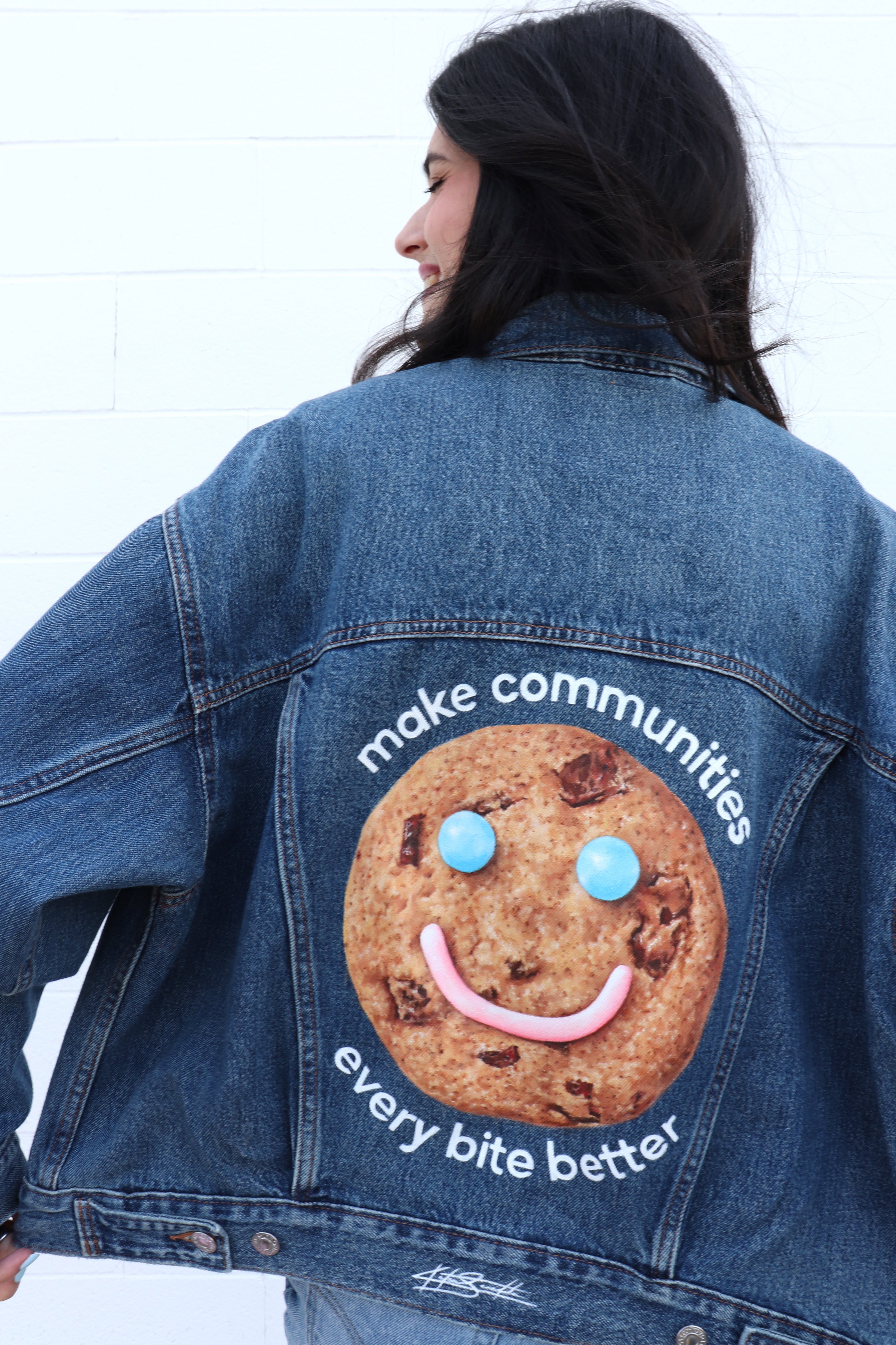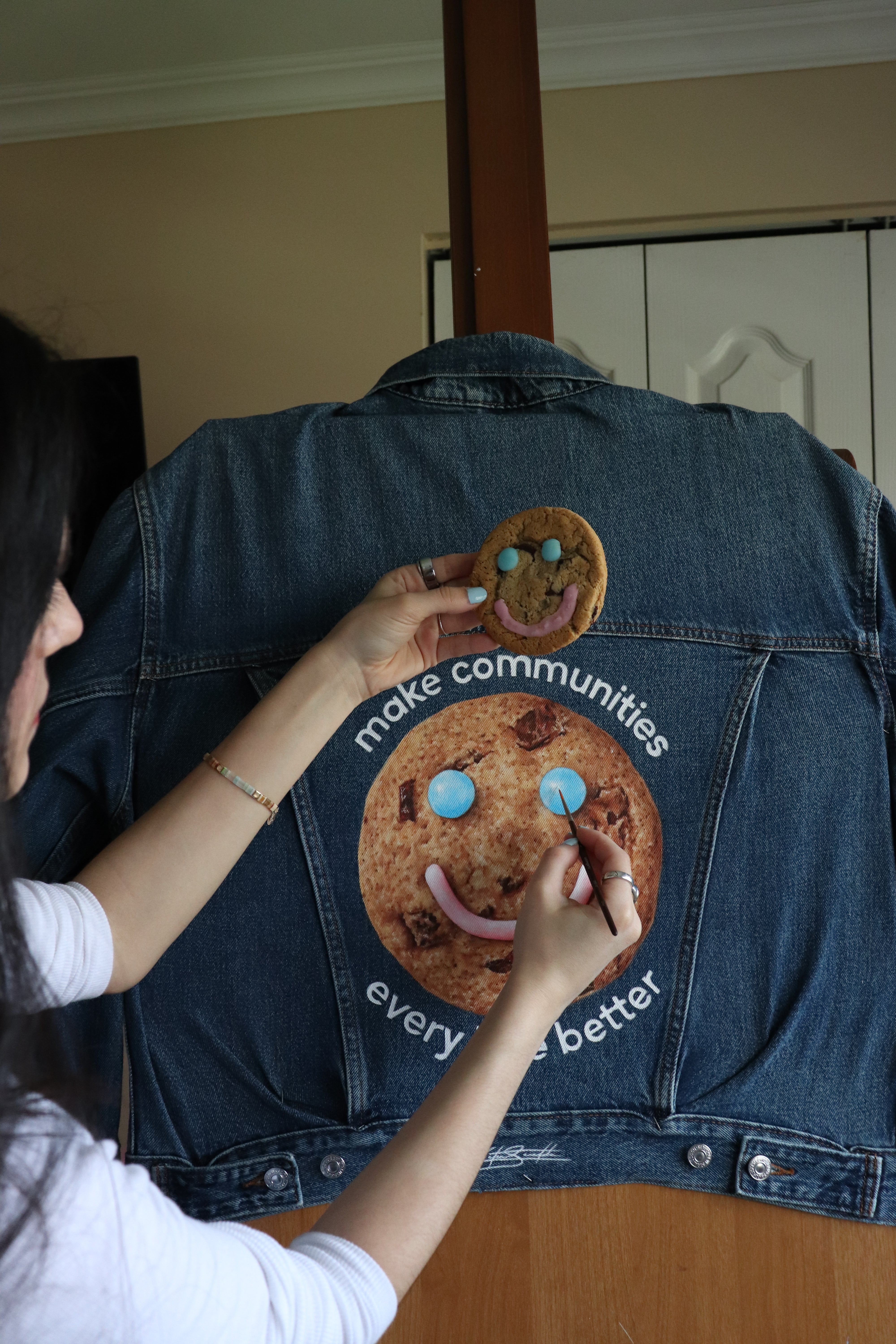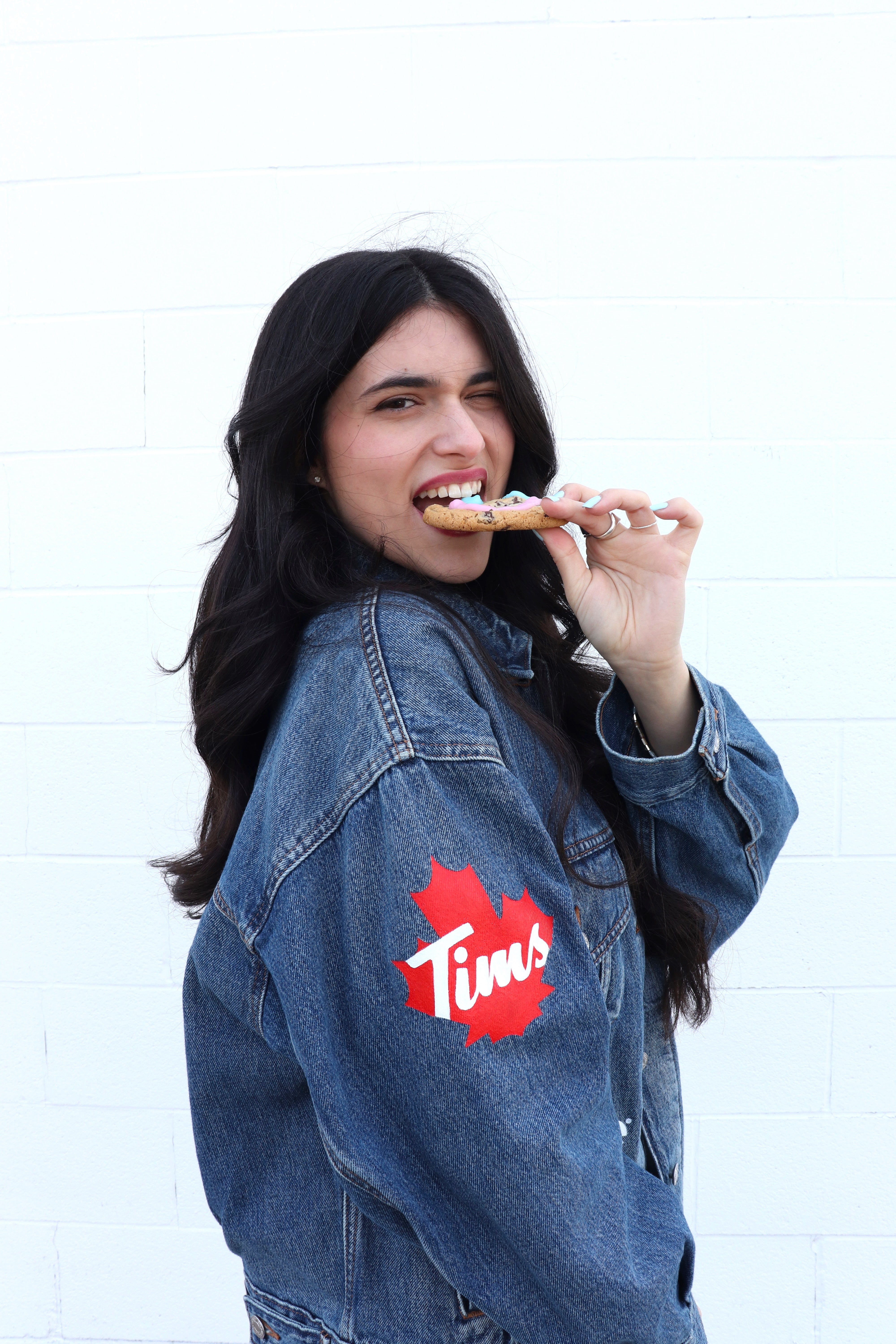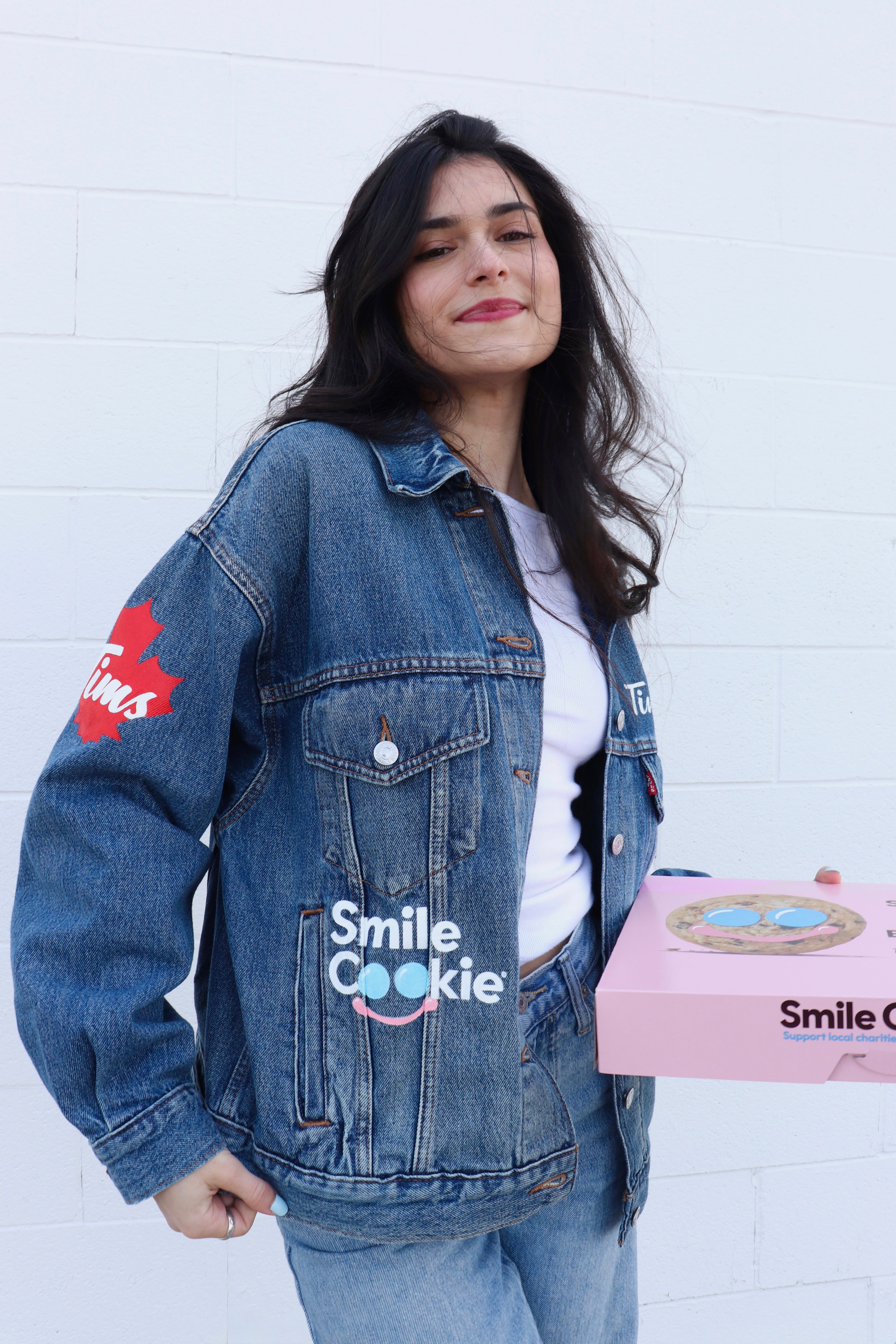 Custom Smile Cookie denim jacket and campaign video for Tim Hortons