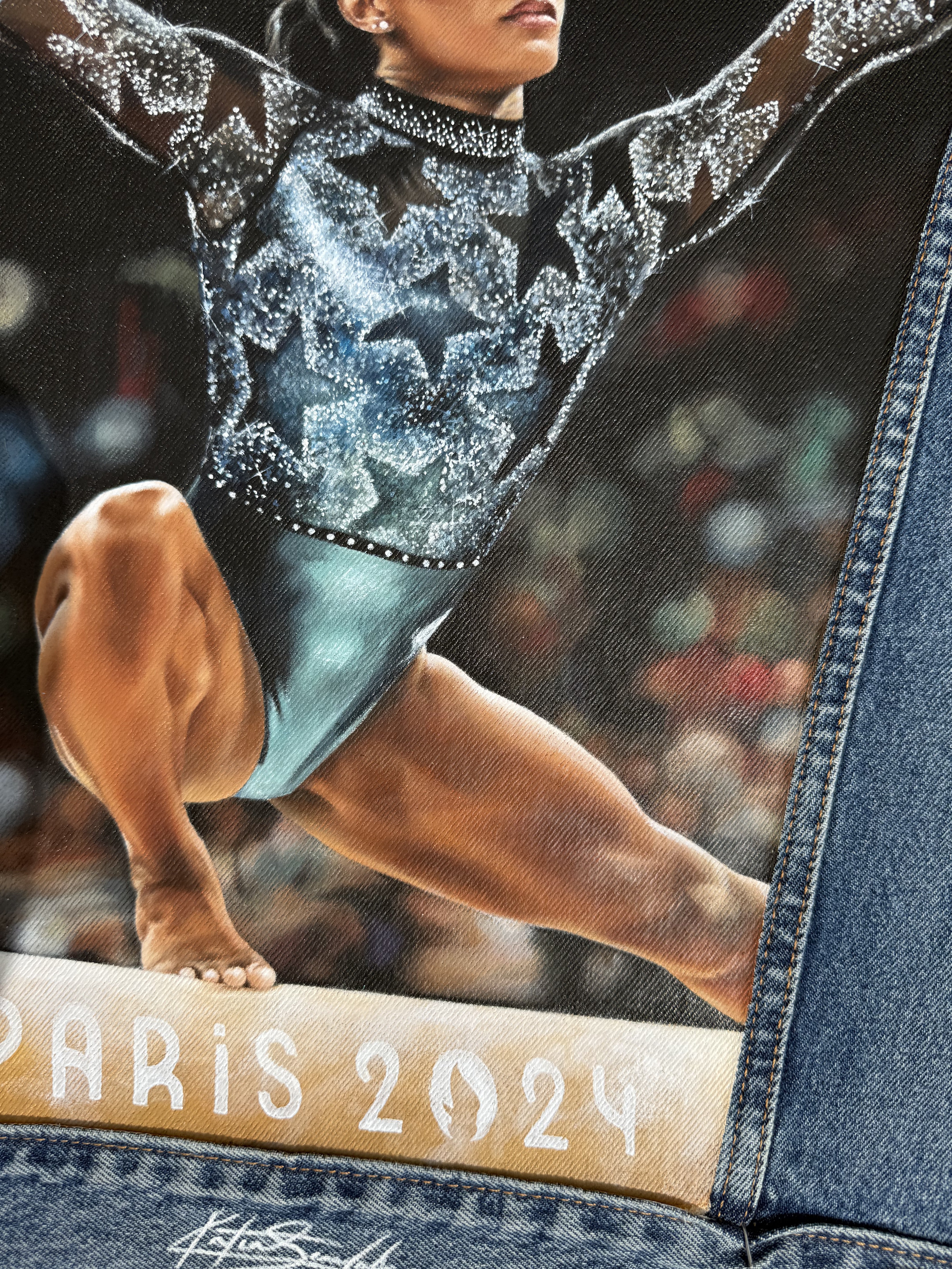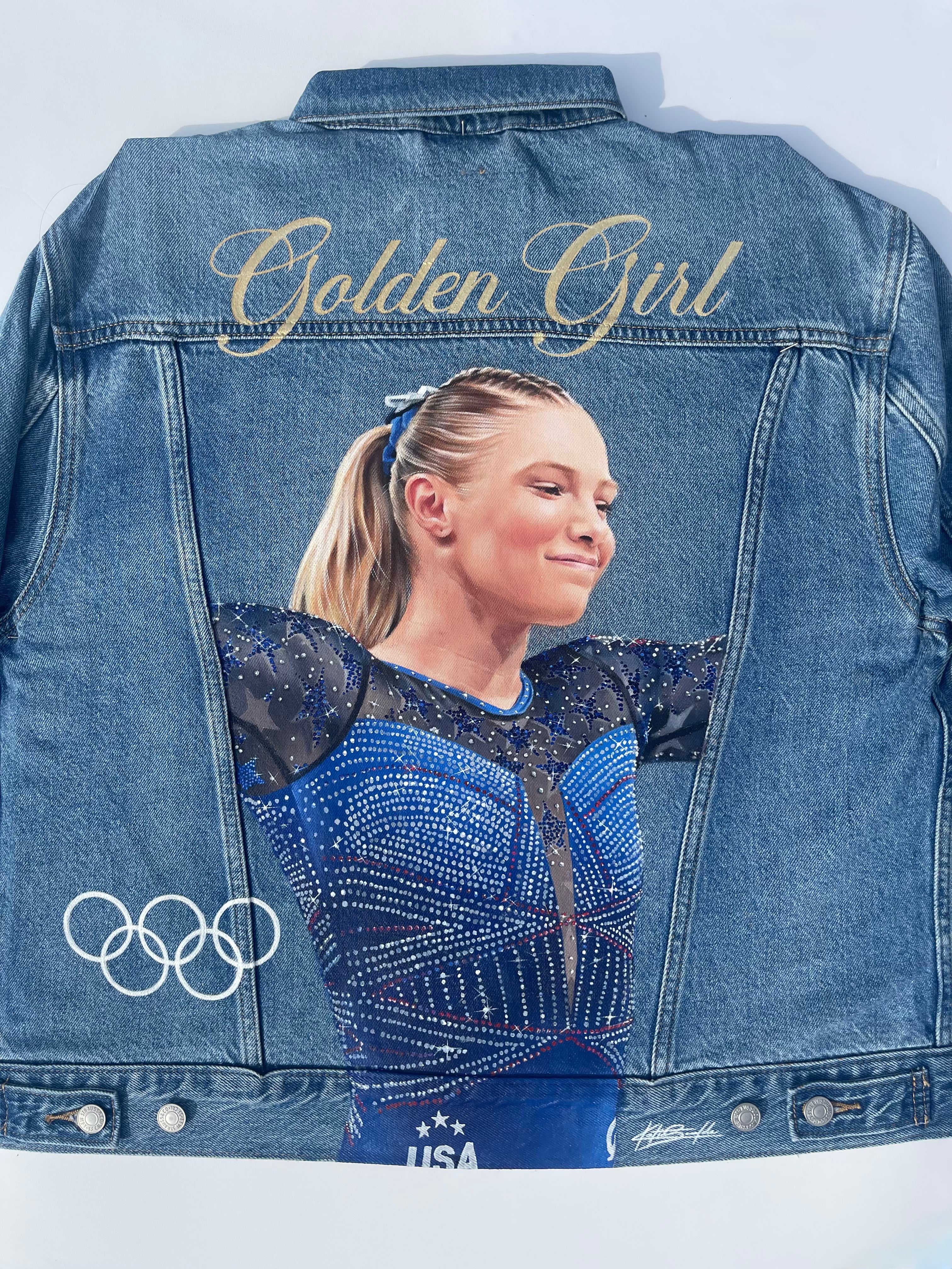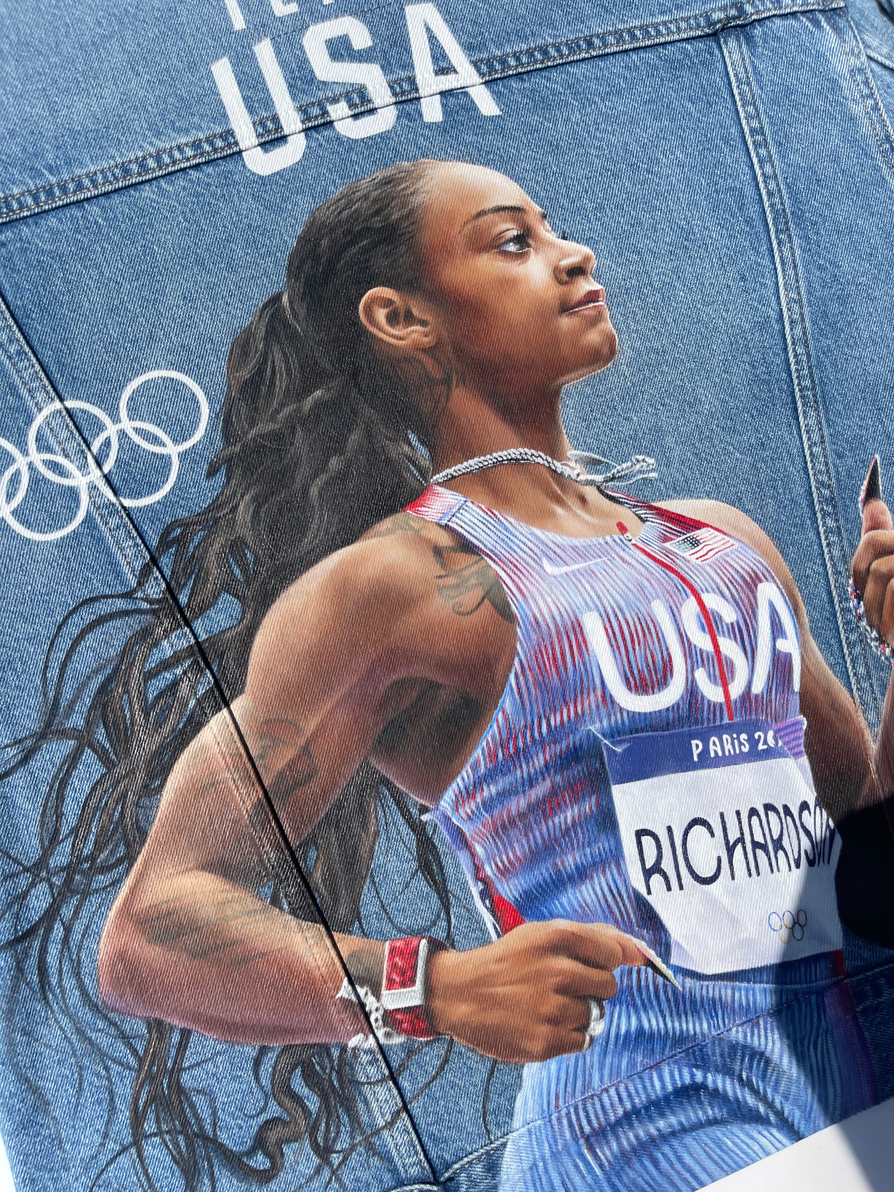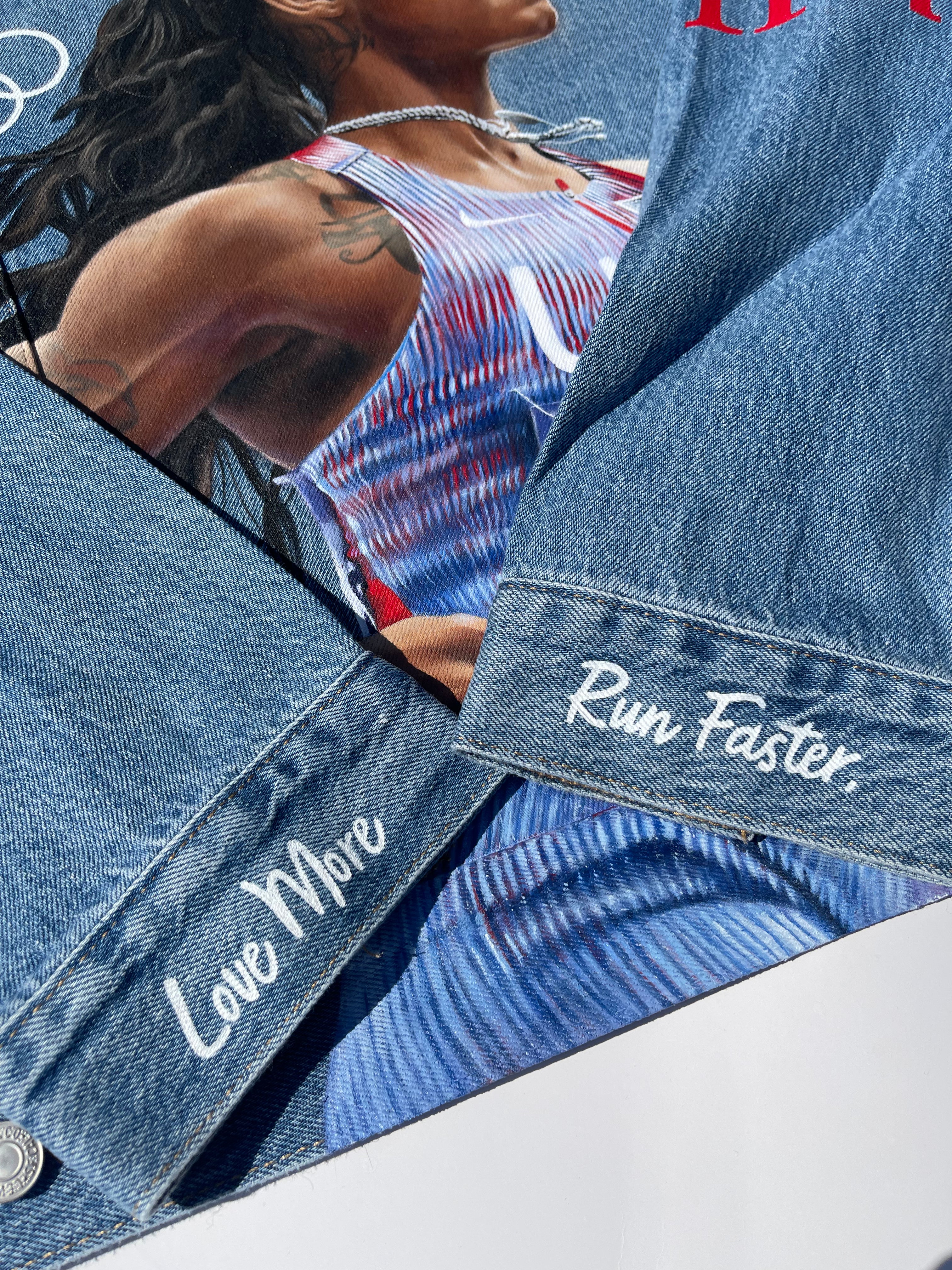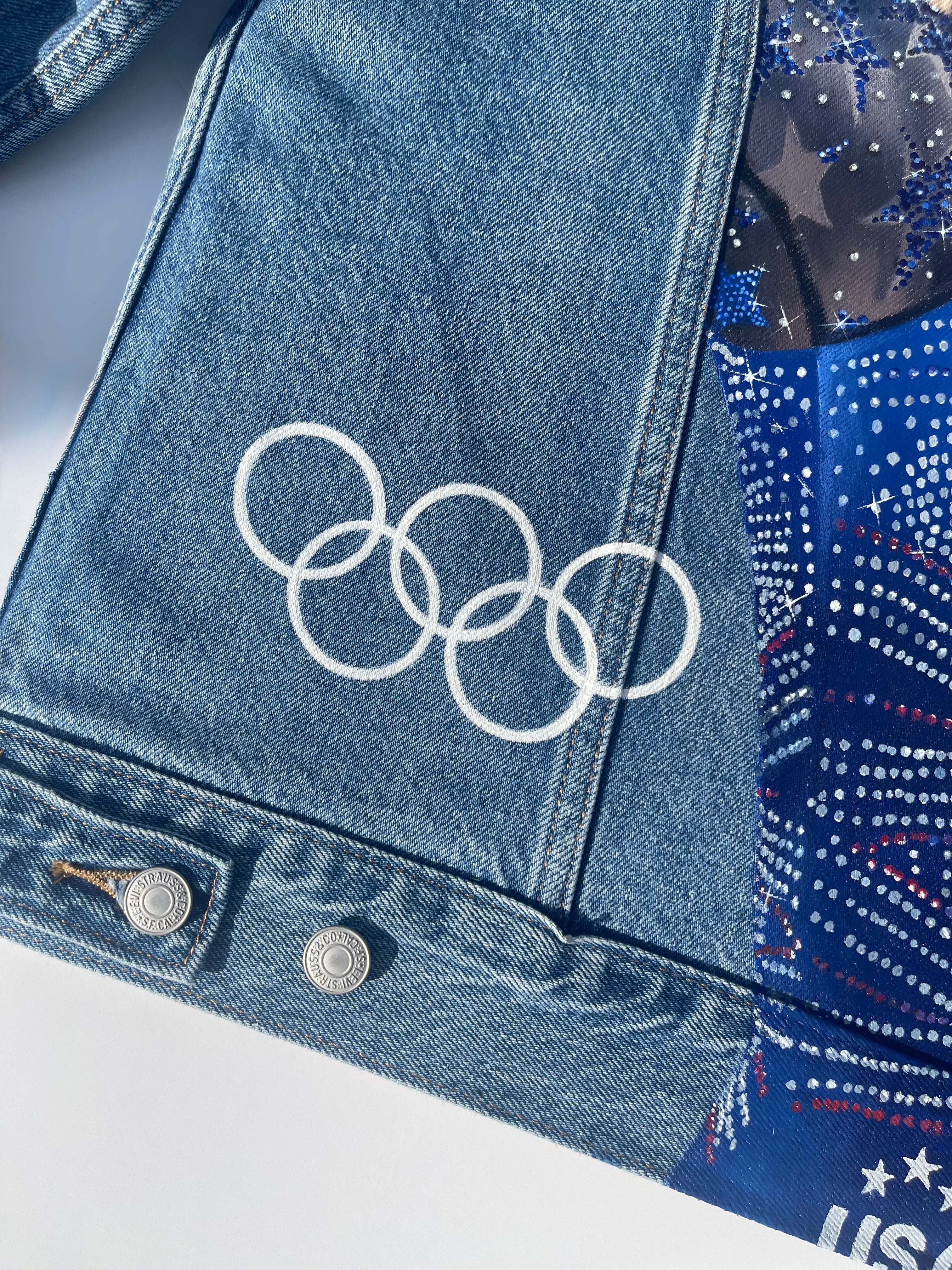 Trü Frü commissioned Katia to design and paint a denim jacket for the 2024 Olympian Medalist. (3/4)