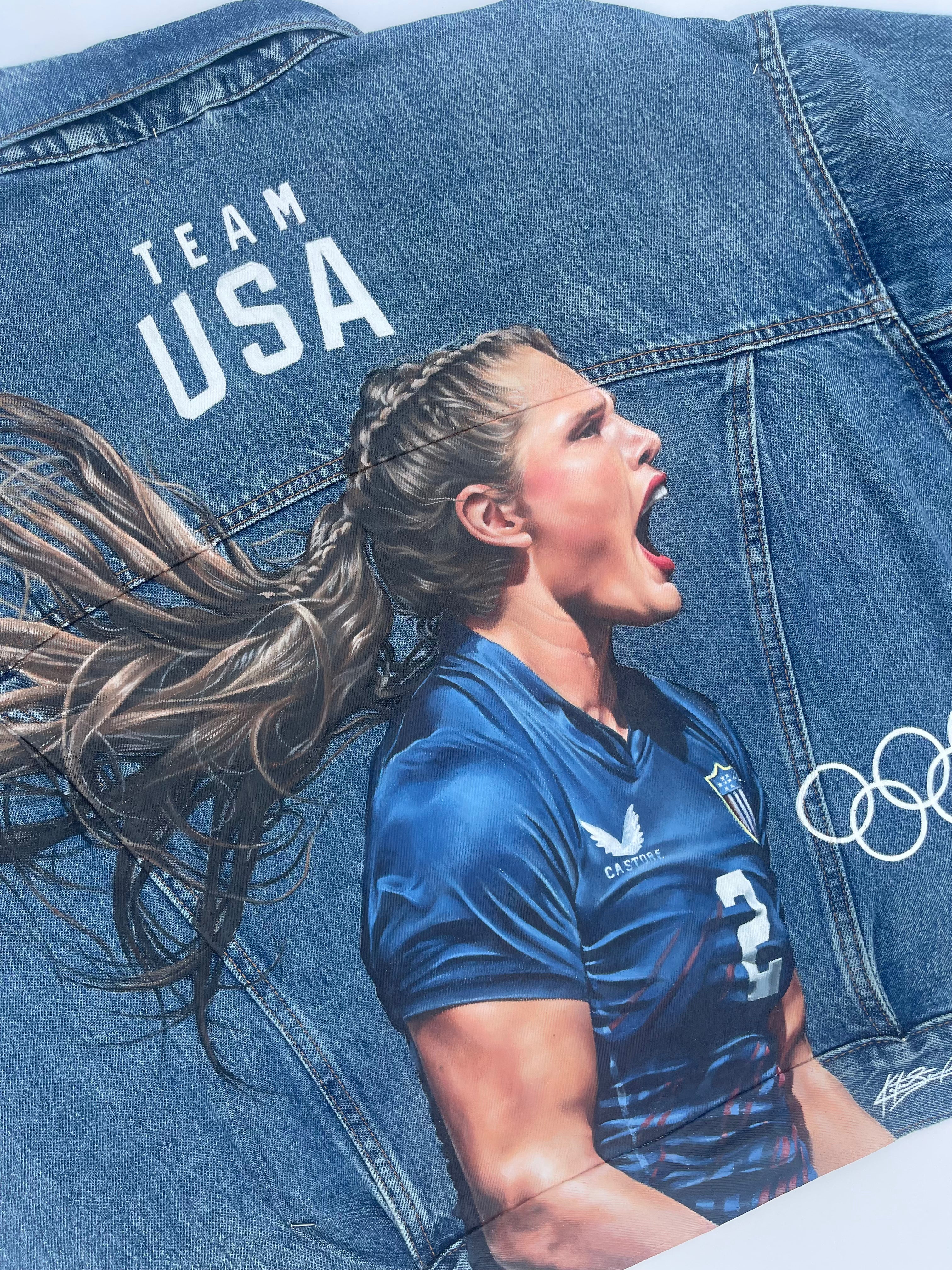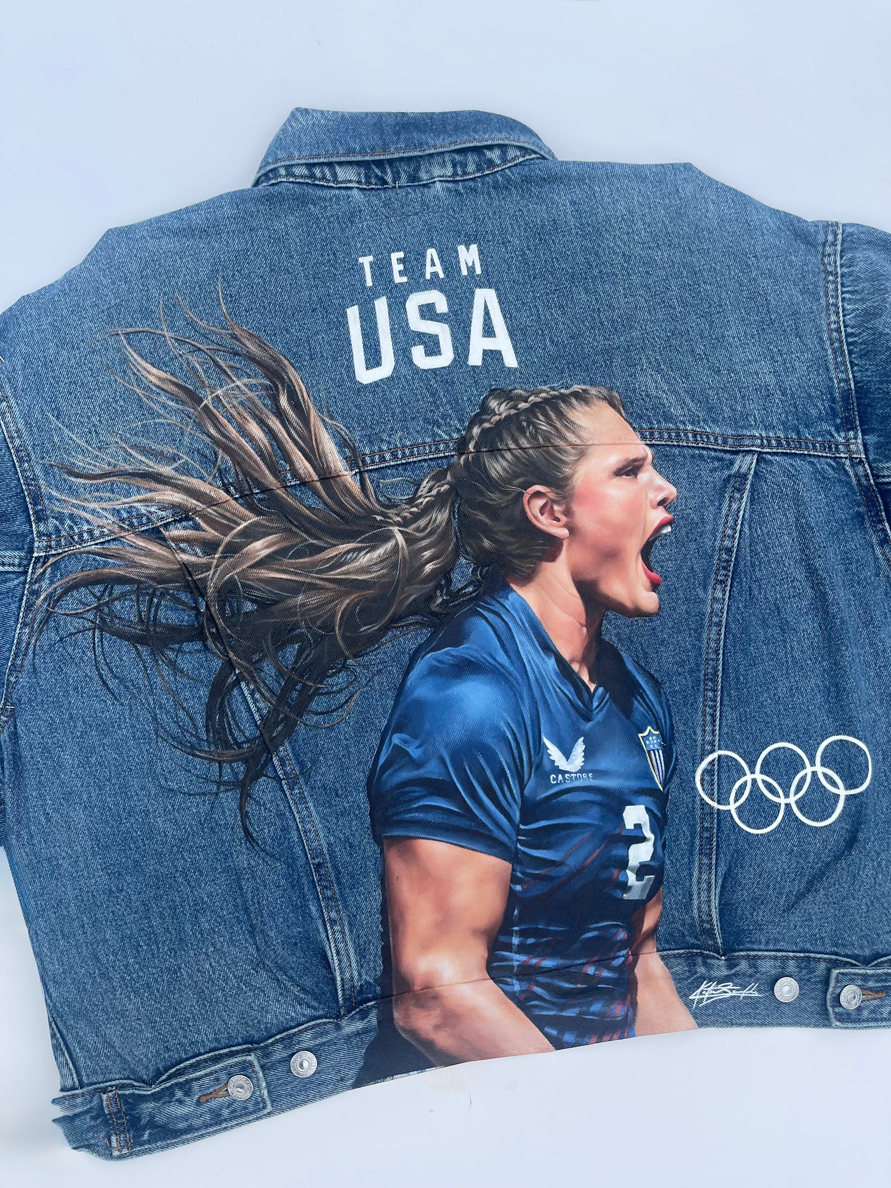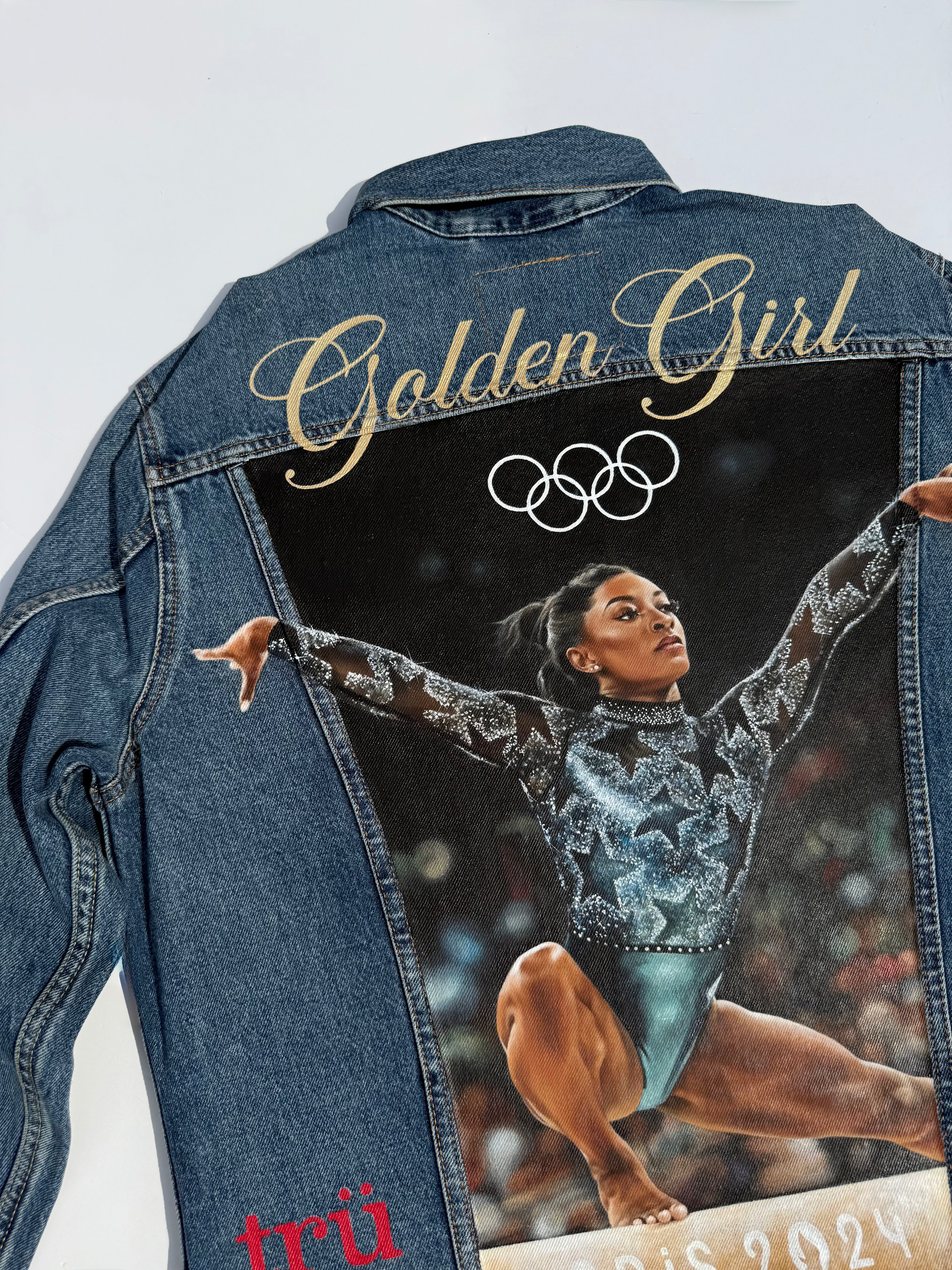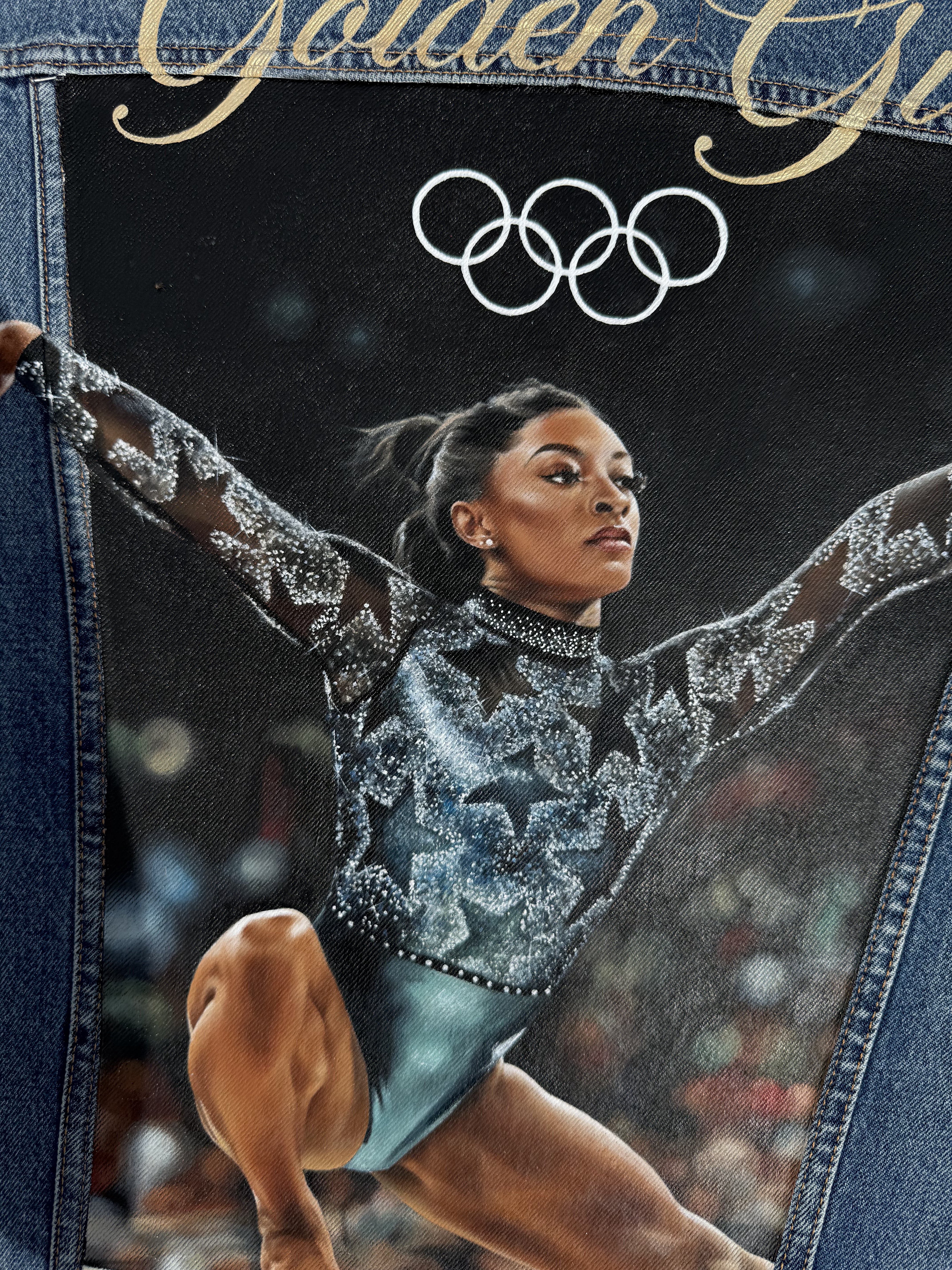 Trü Frü commissioned Katia to design and paint a denim jacket for the 2024 Olympian Medalist. (3/4)