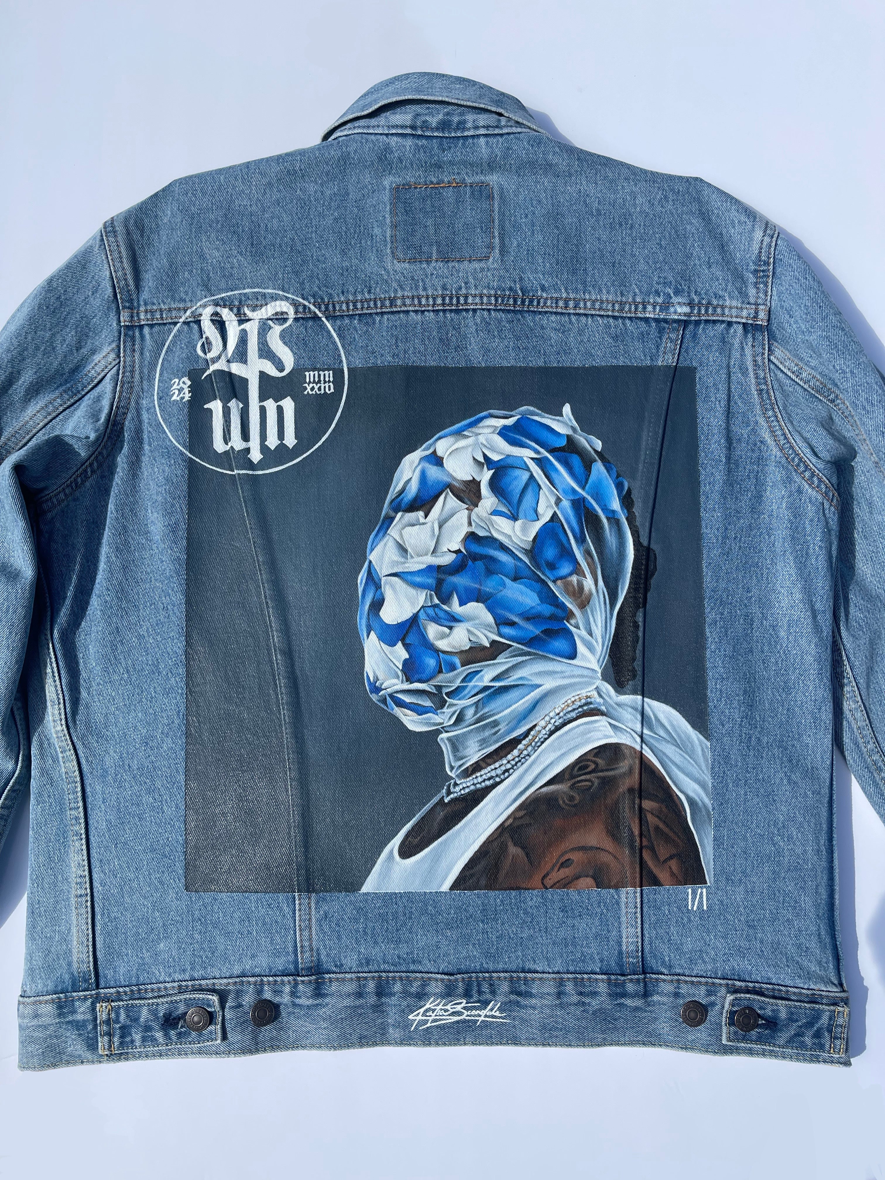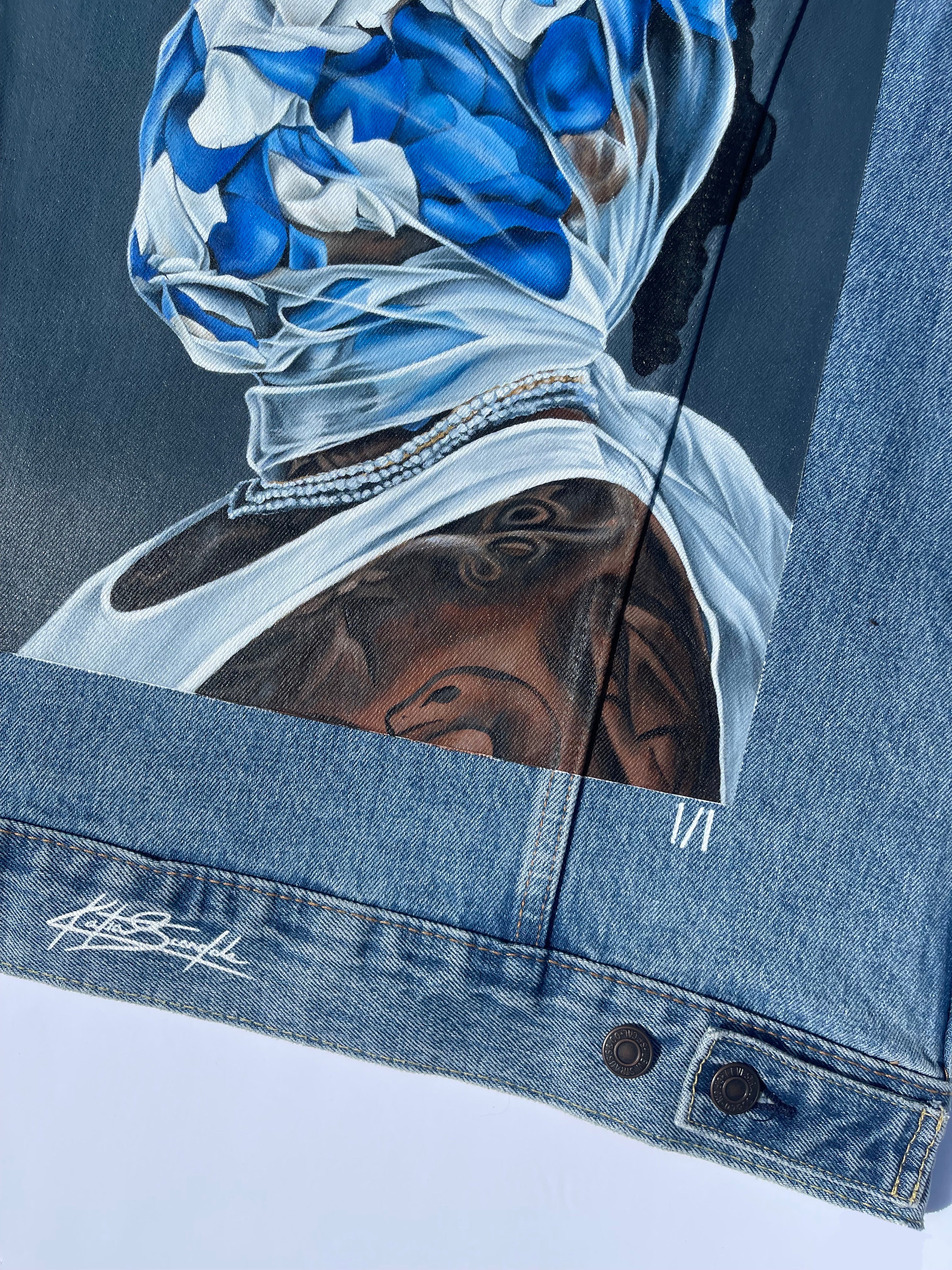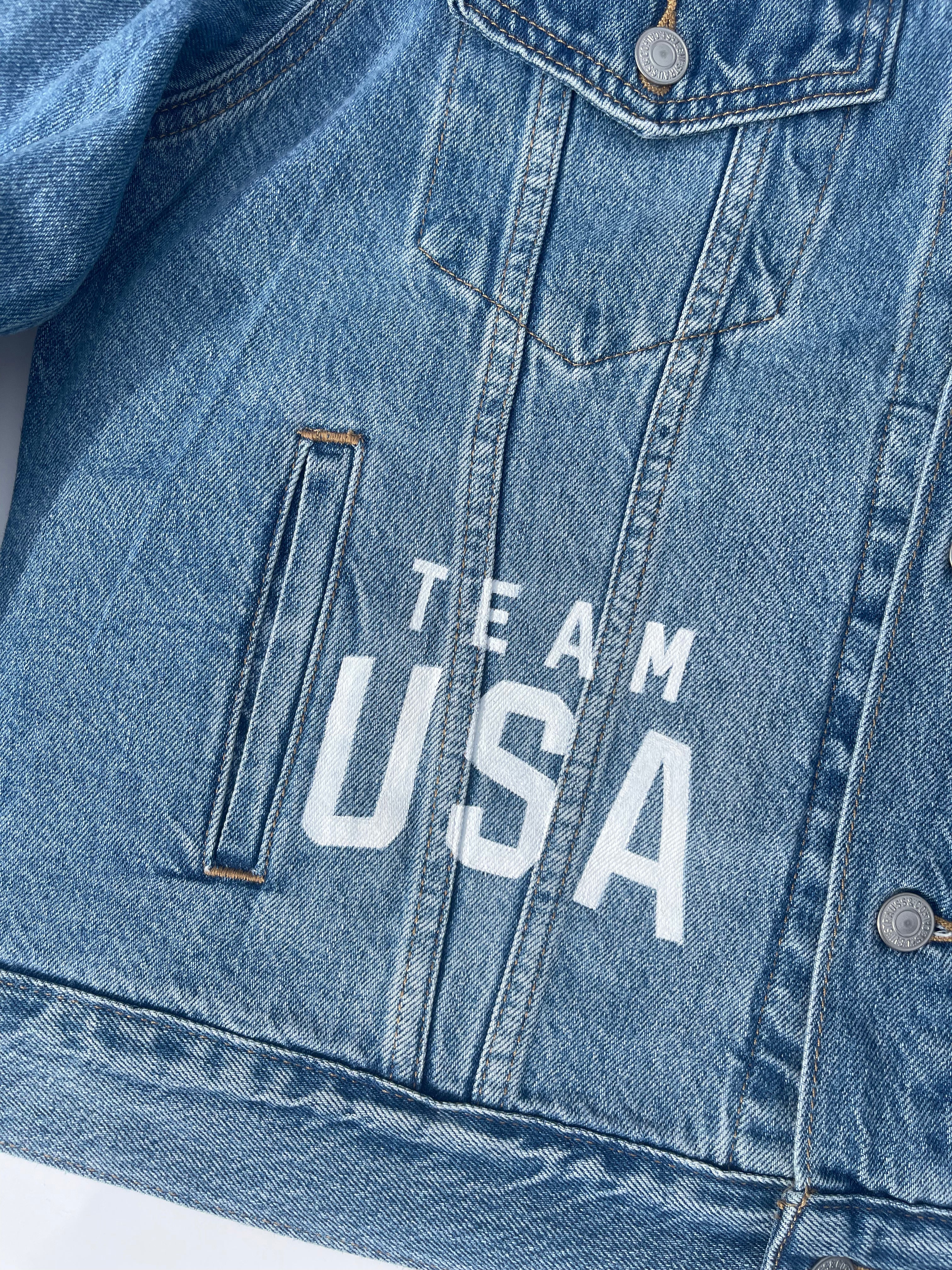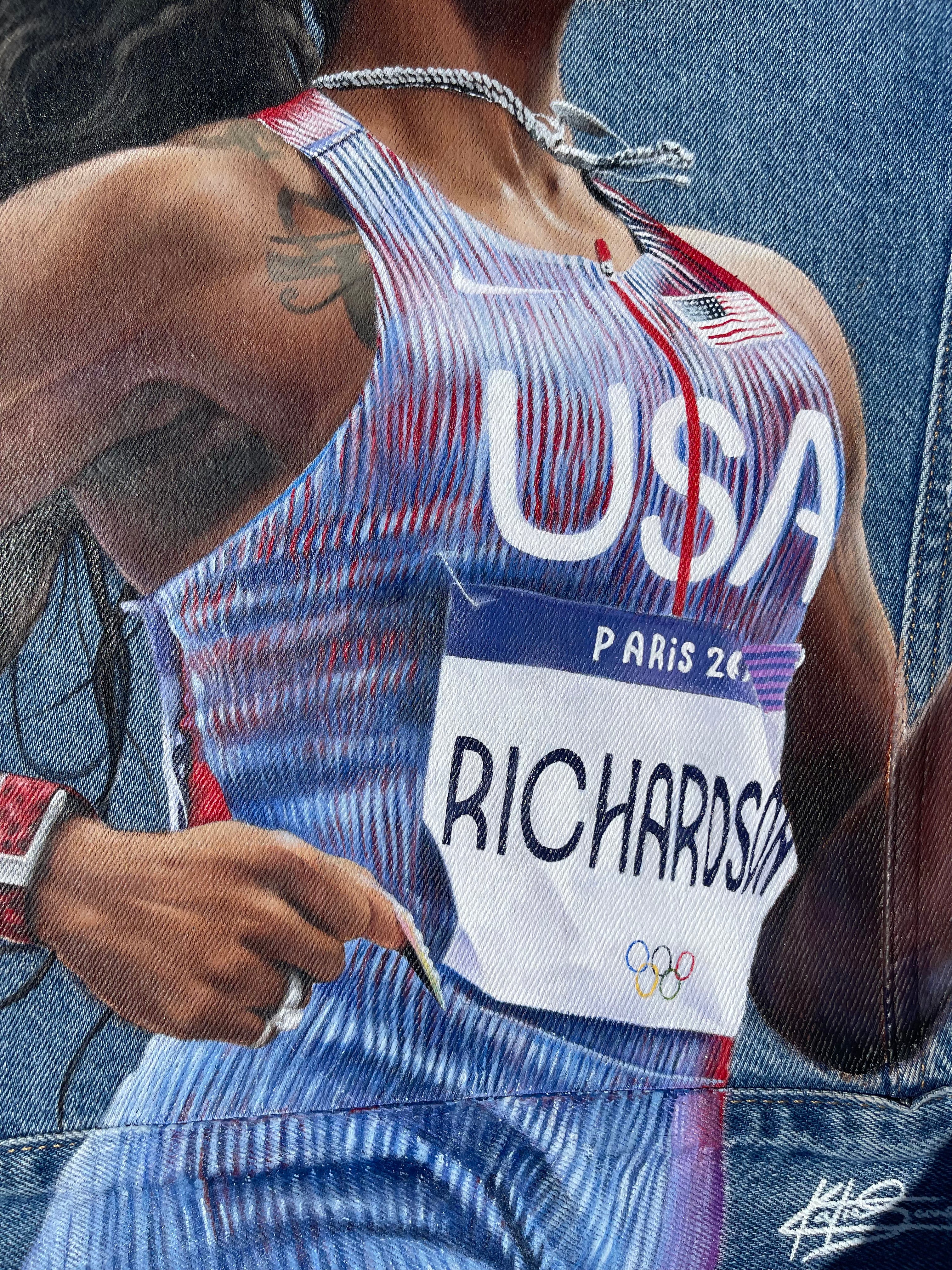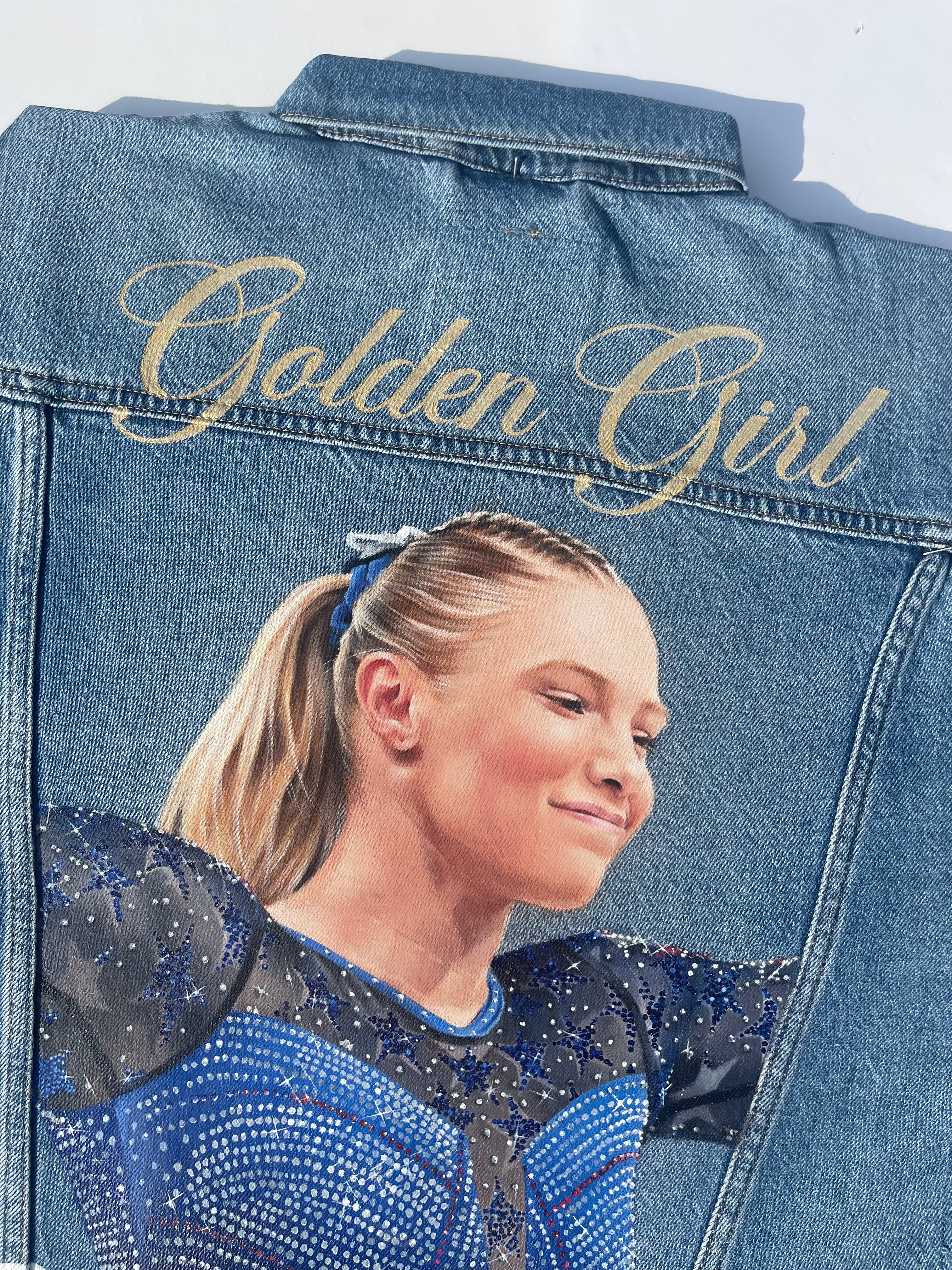 Trü Frü commissioned Katia to design and paint a denim jacket for the 2024 Olympian Medalist. (3/4)
