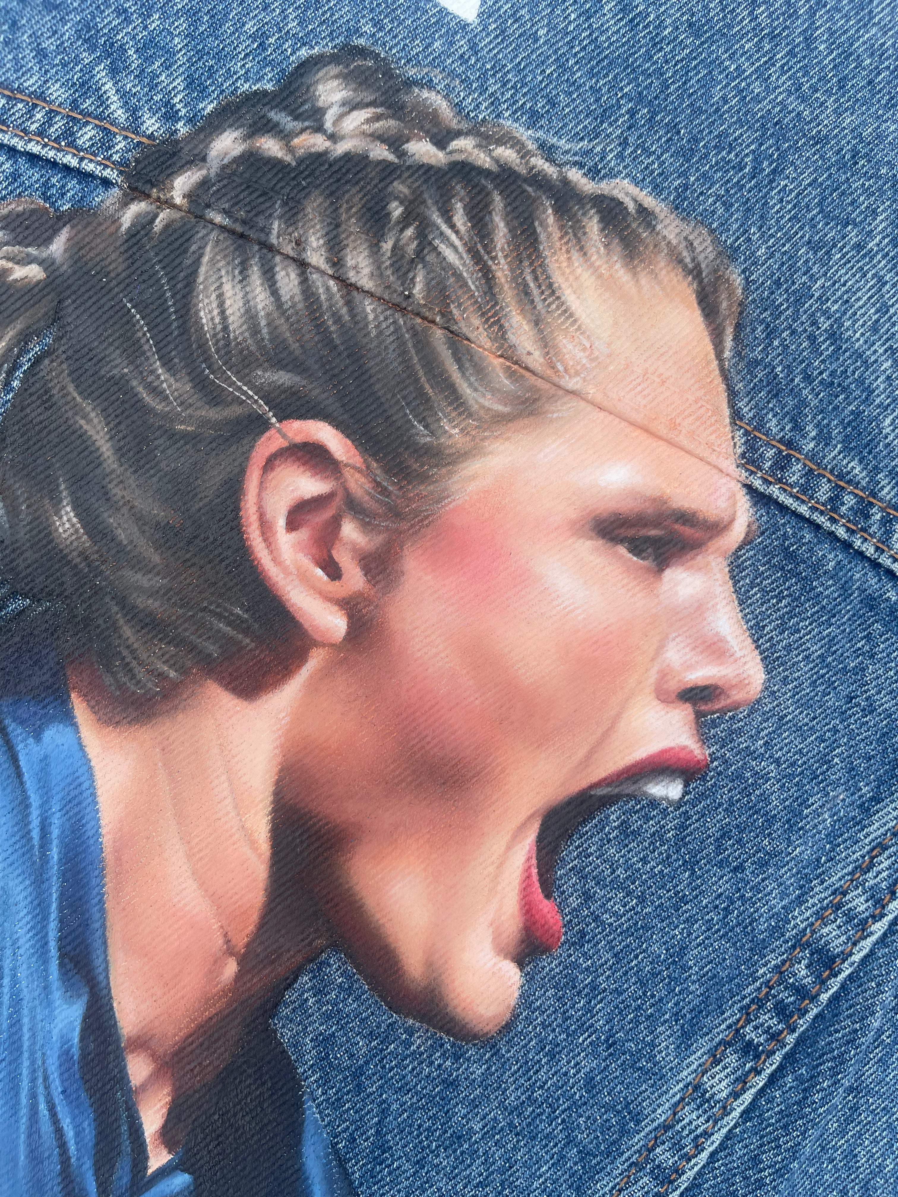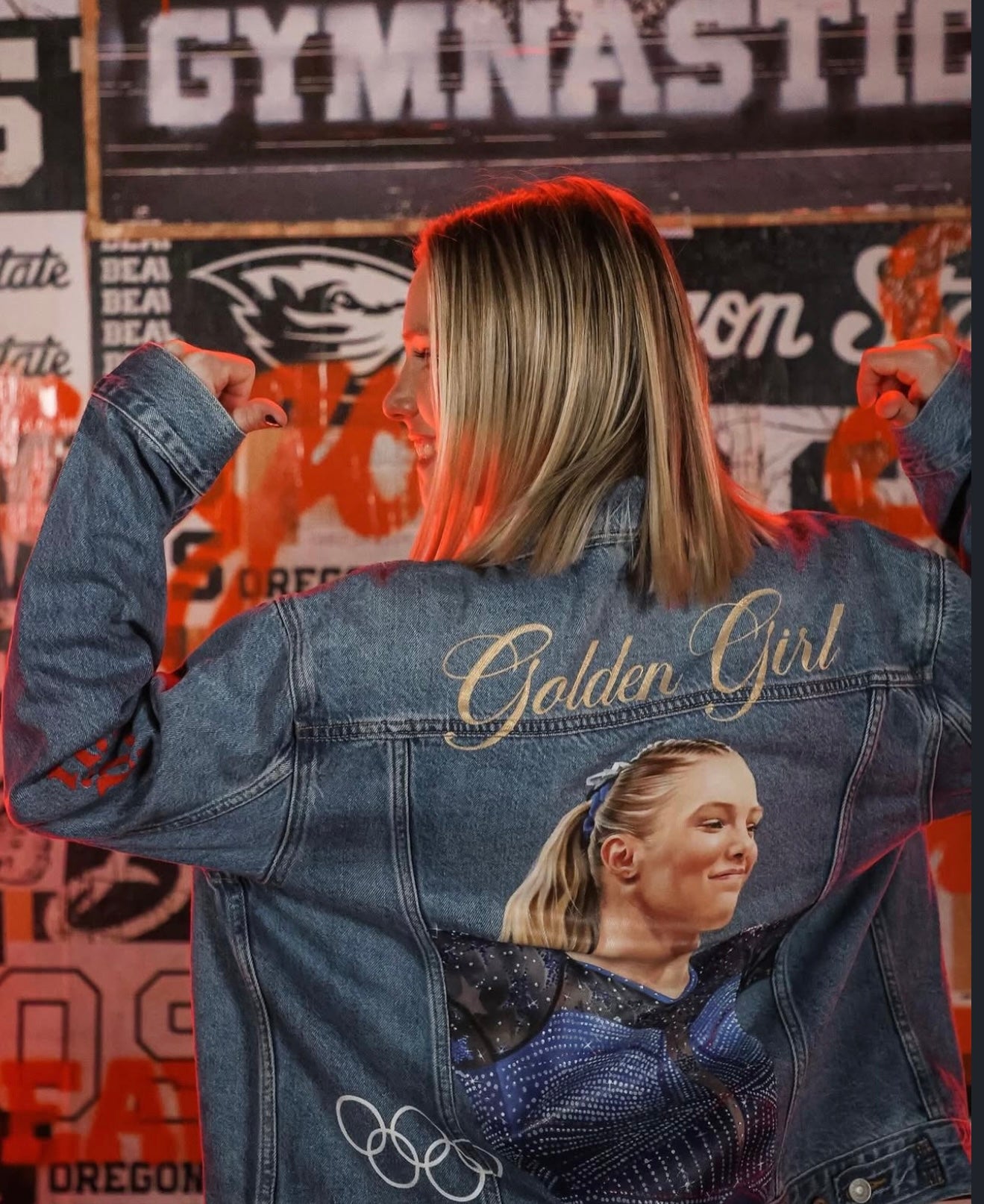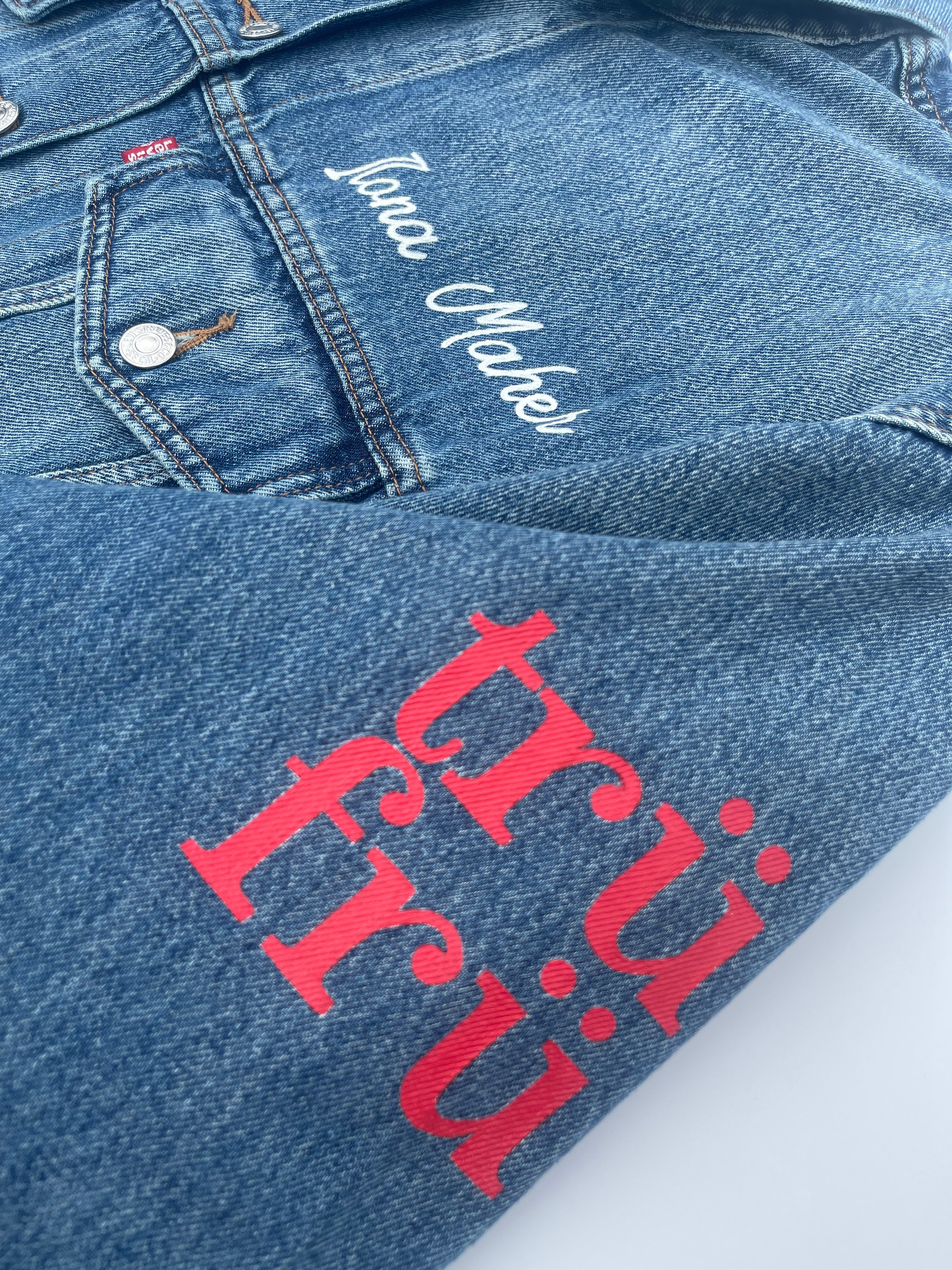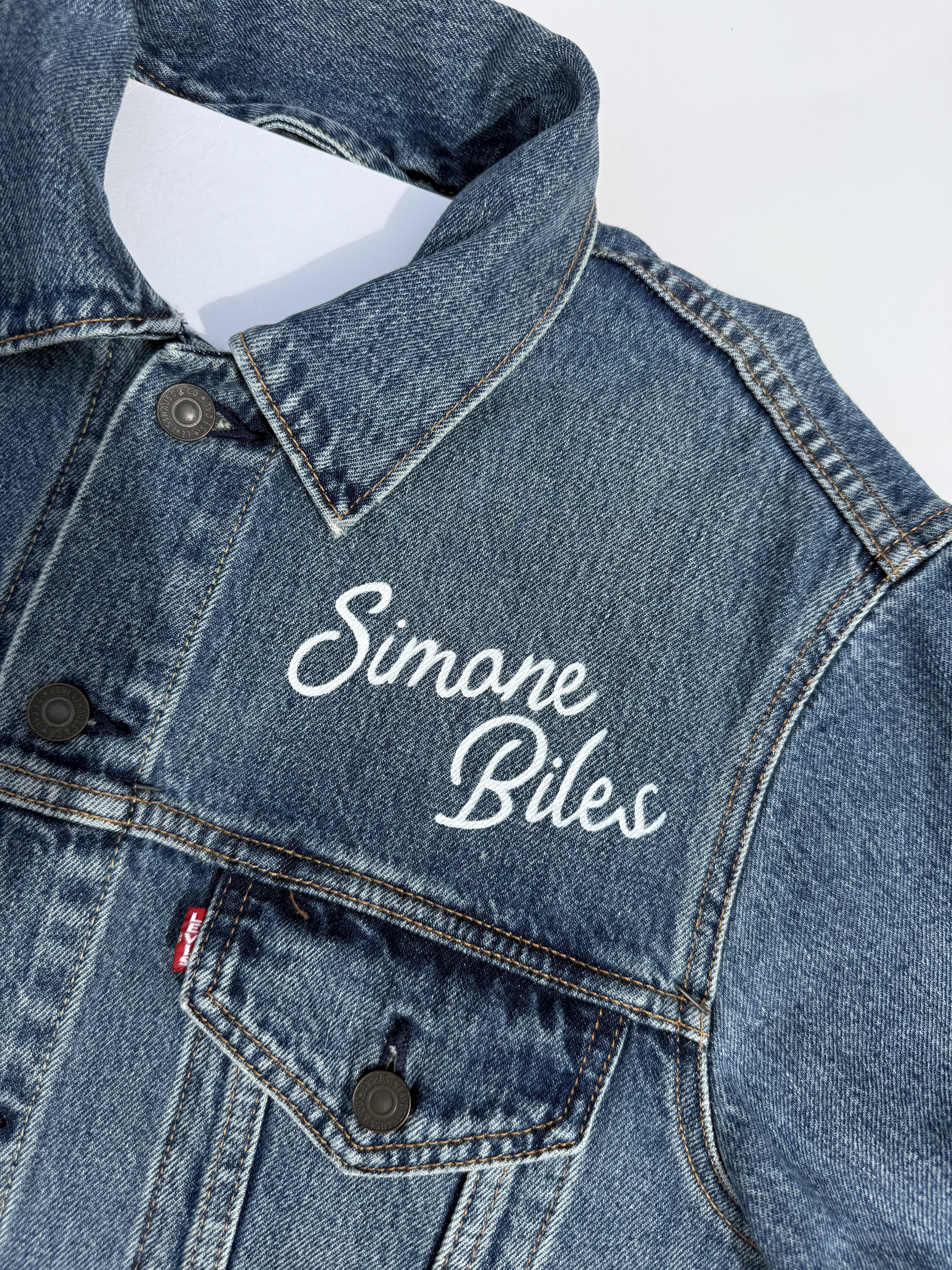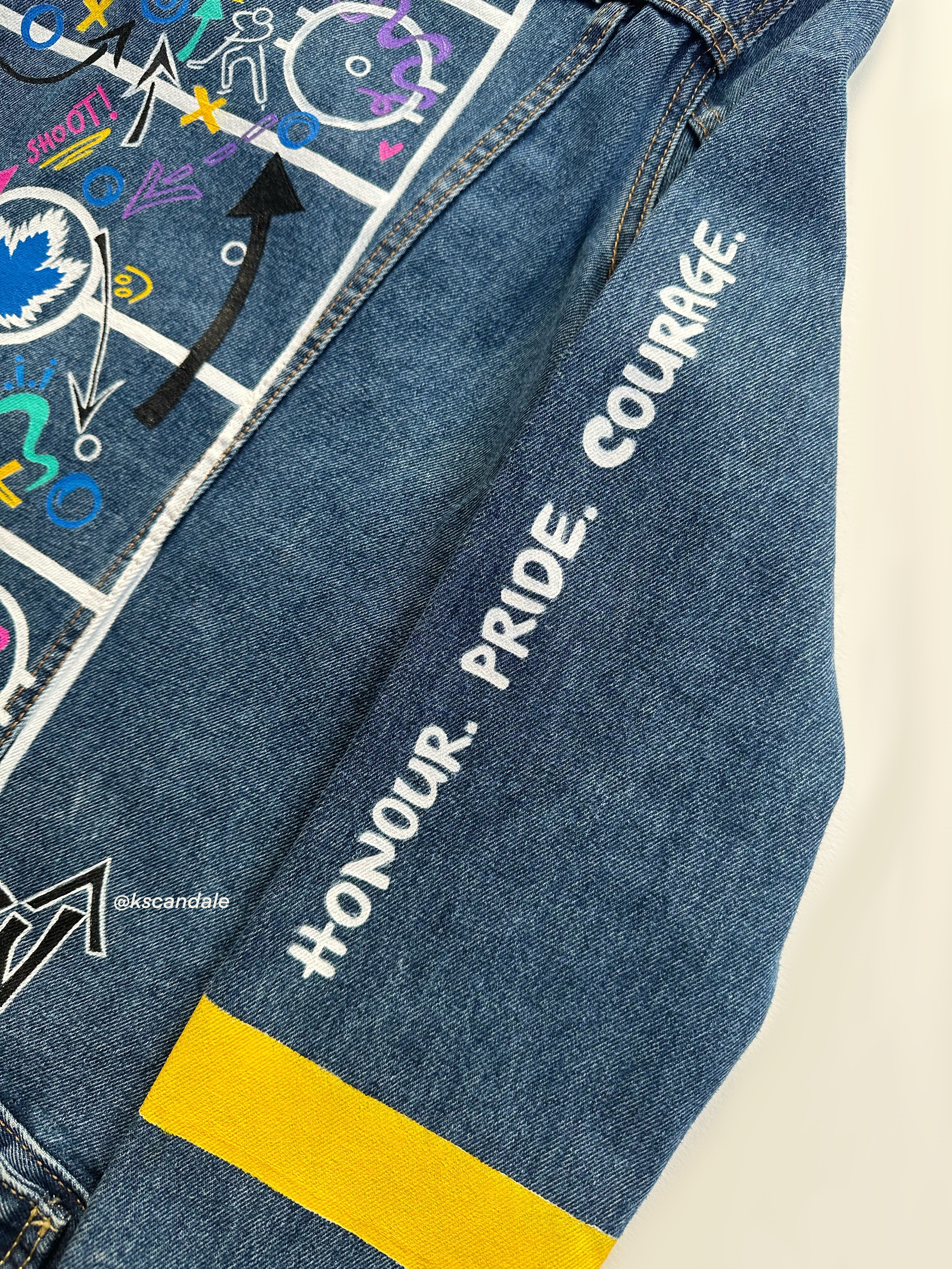 Trü Frü commissioned Katia to design and paint a denim jacket for the 2024 Olympian Medalist. (3/4)