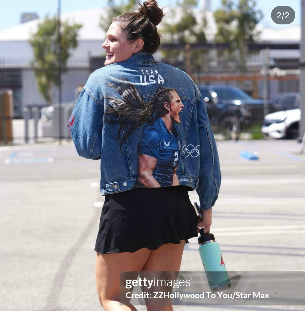 Trü Frü commissioned Katia to design and paint a denim jacket for the 2024 Olympian Medalist. (2/4)