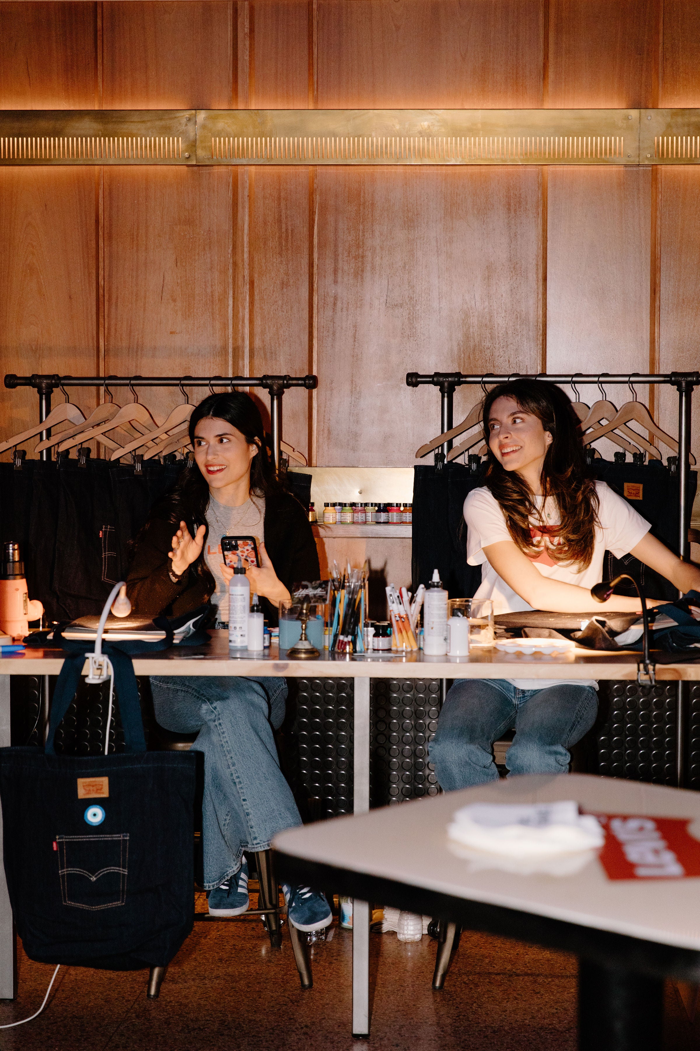 Live painting denim tote bags for LEVI'S event attenders.