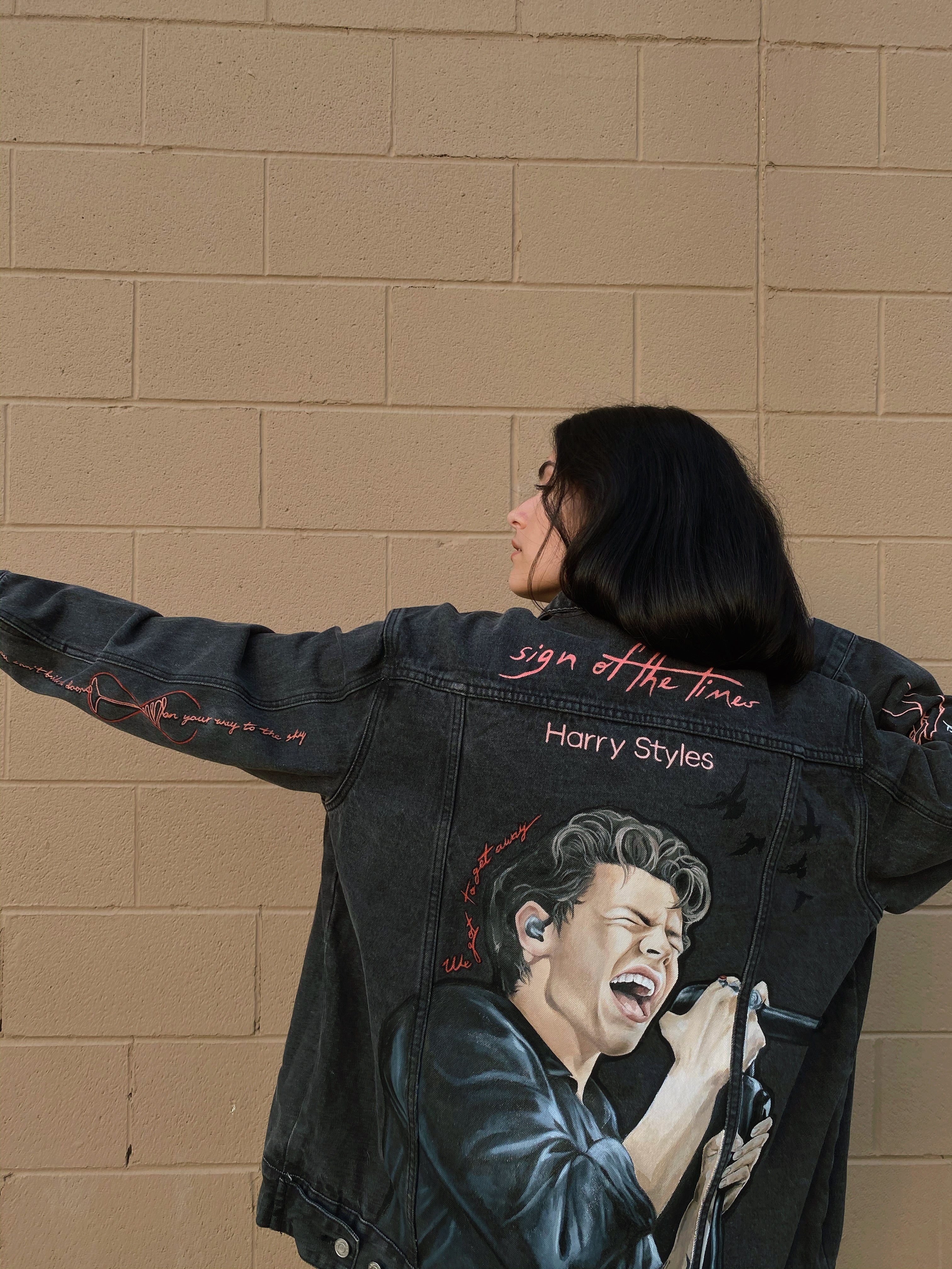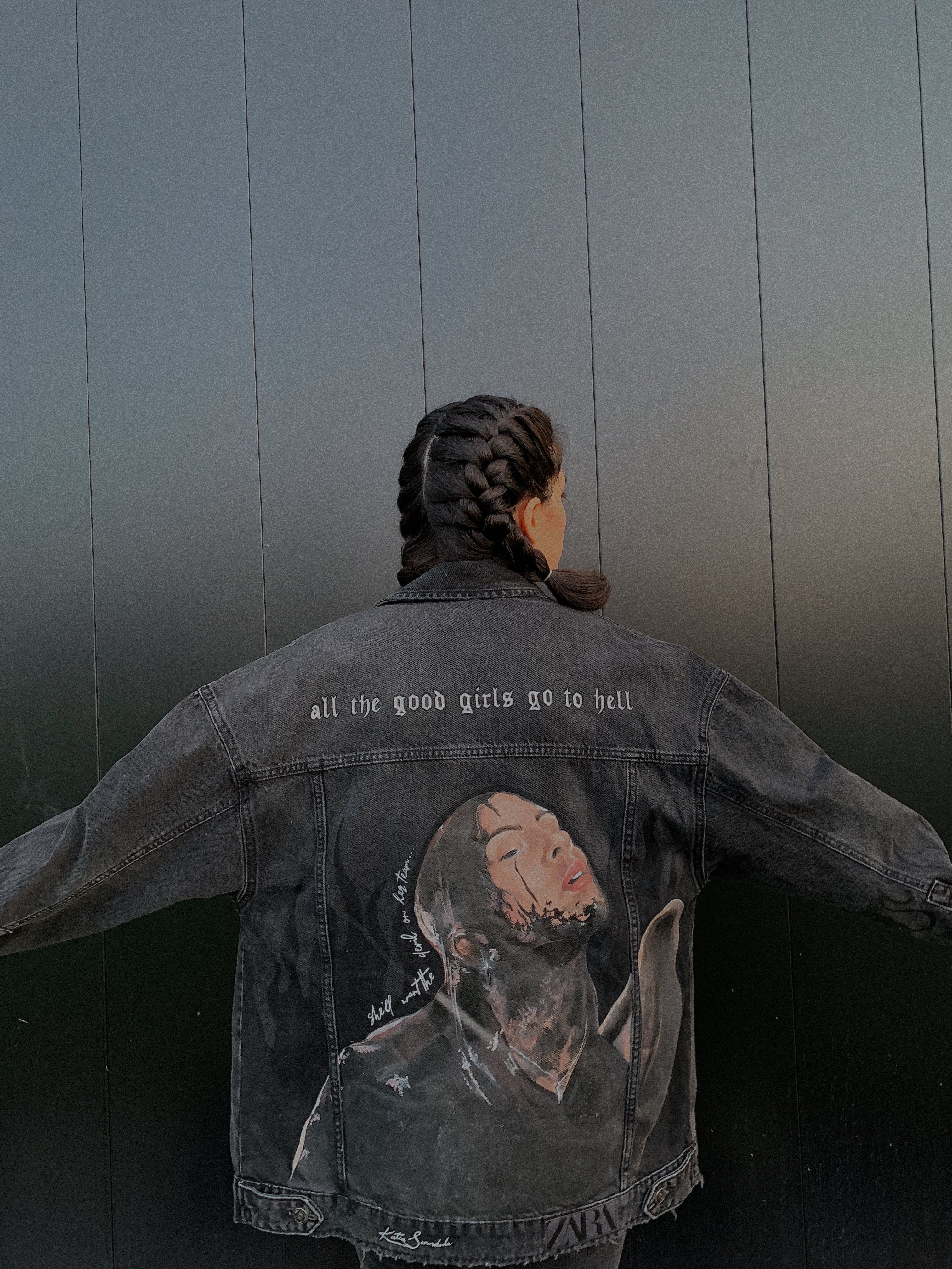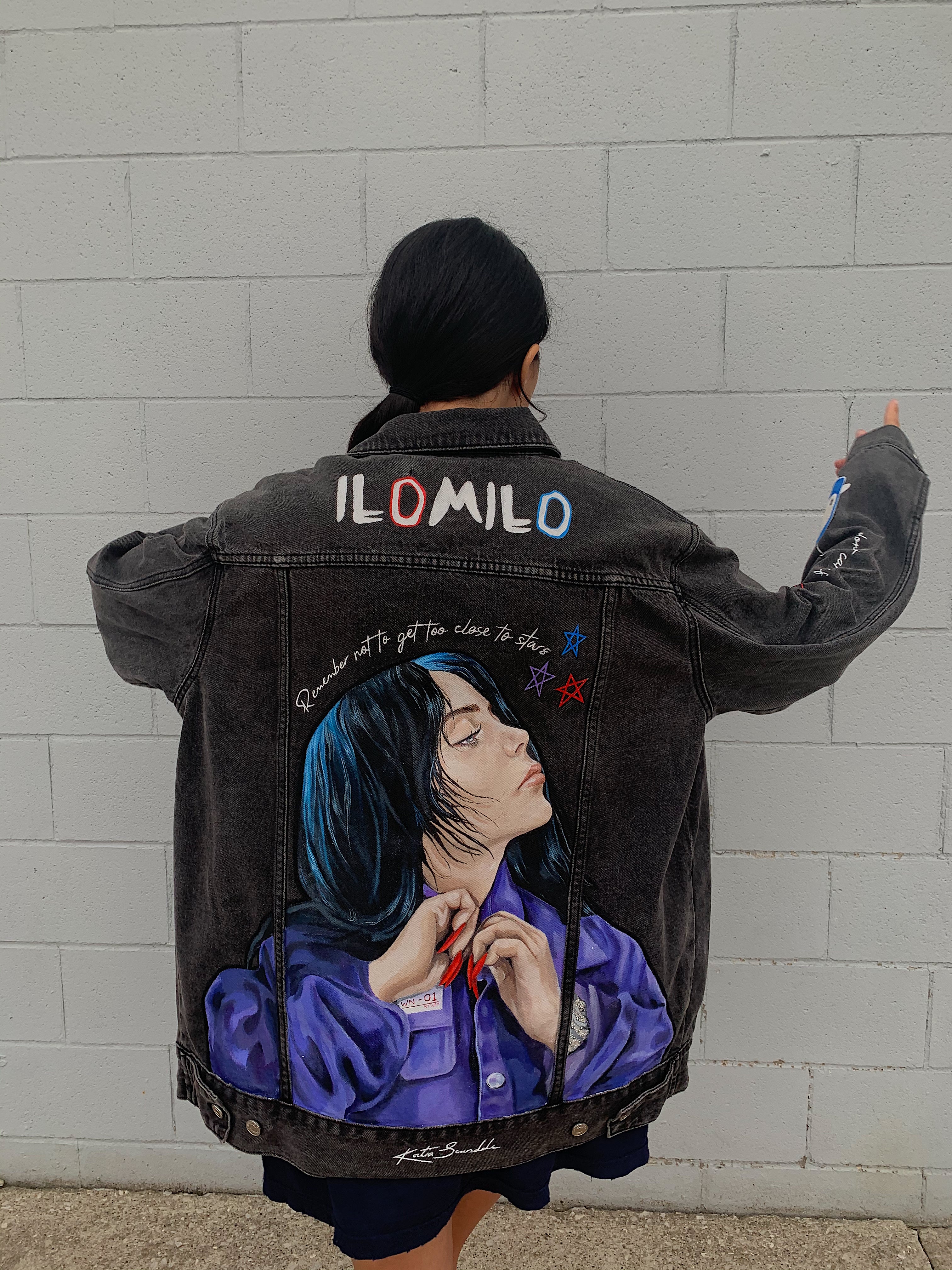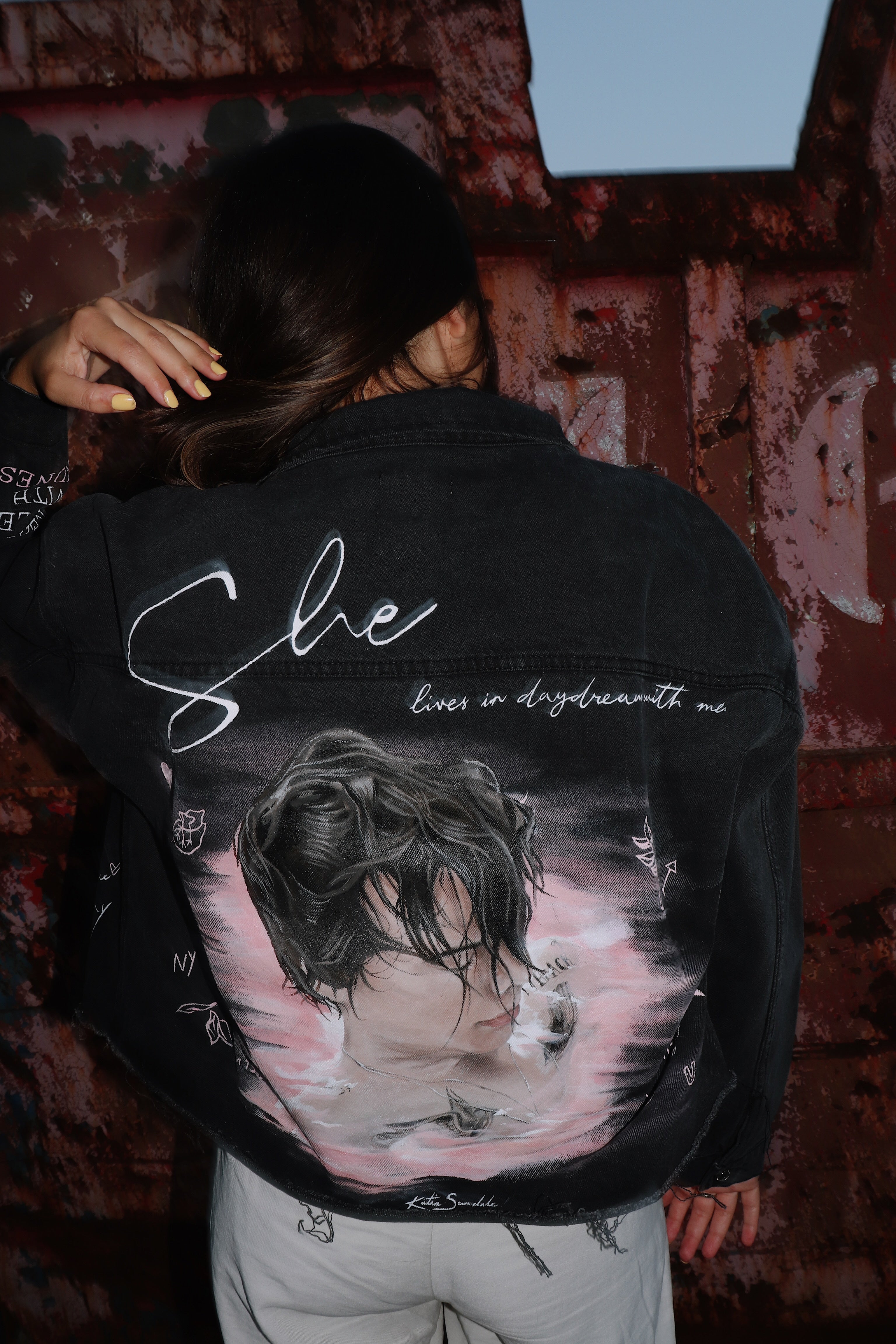 Custom Denim Jackets are a unique and high demand work from Katia. The jackets feature different celebrities and themes. They are usually made to order and specially designed for each client.