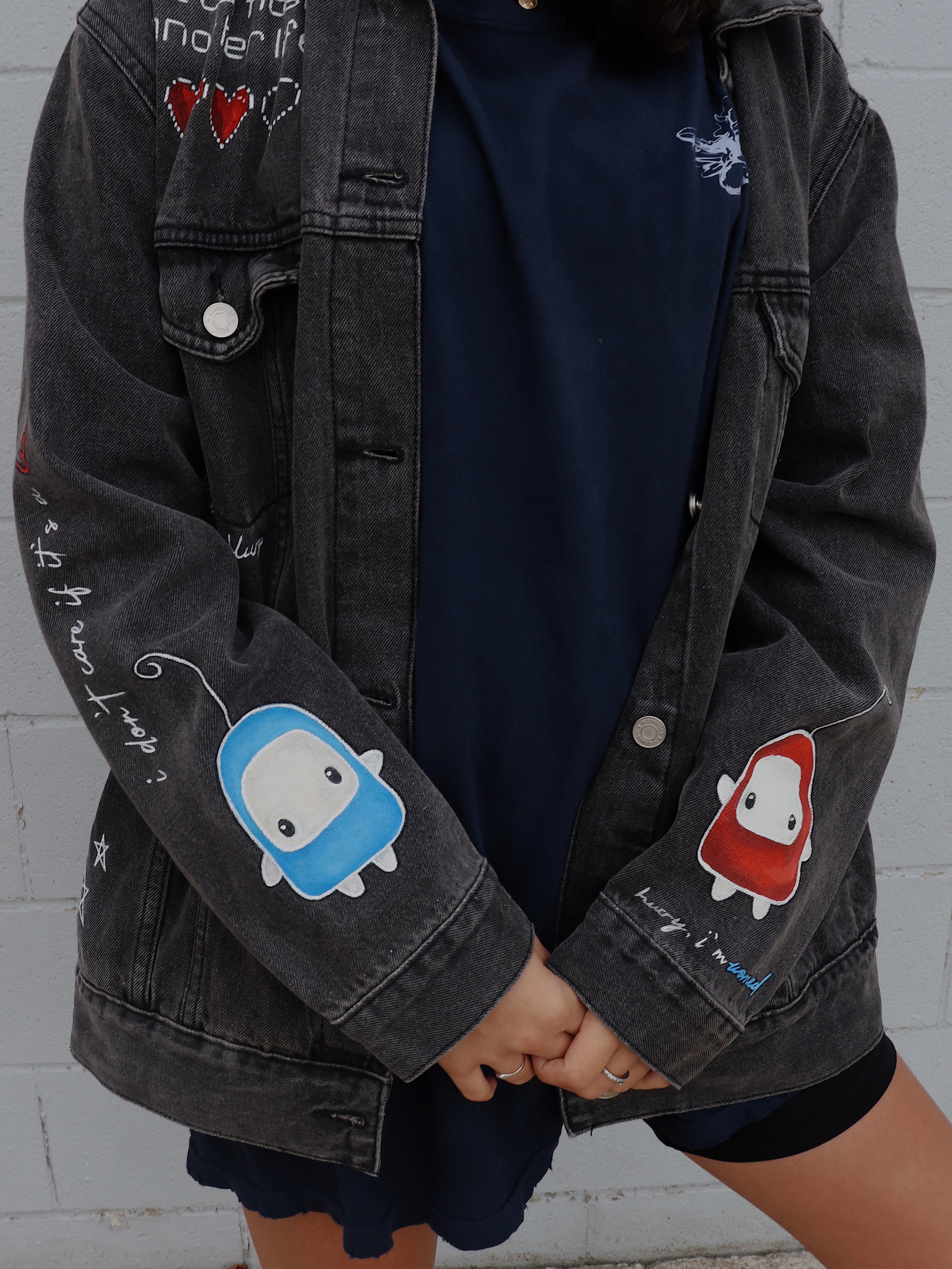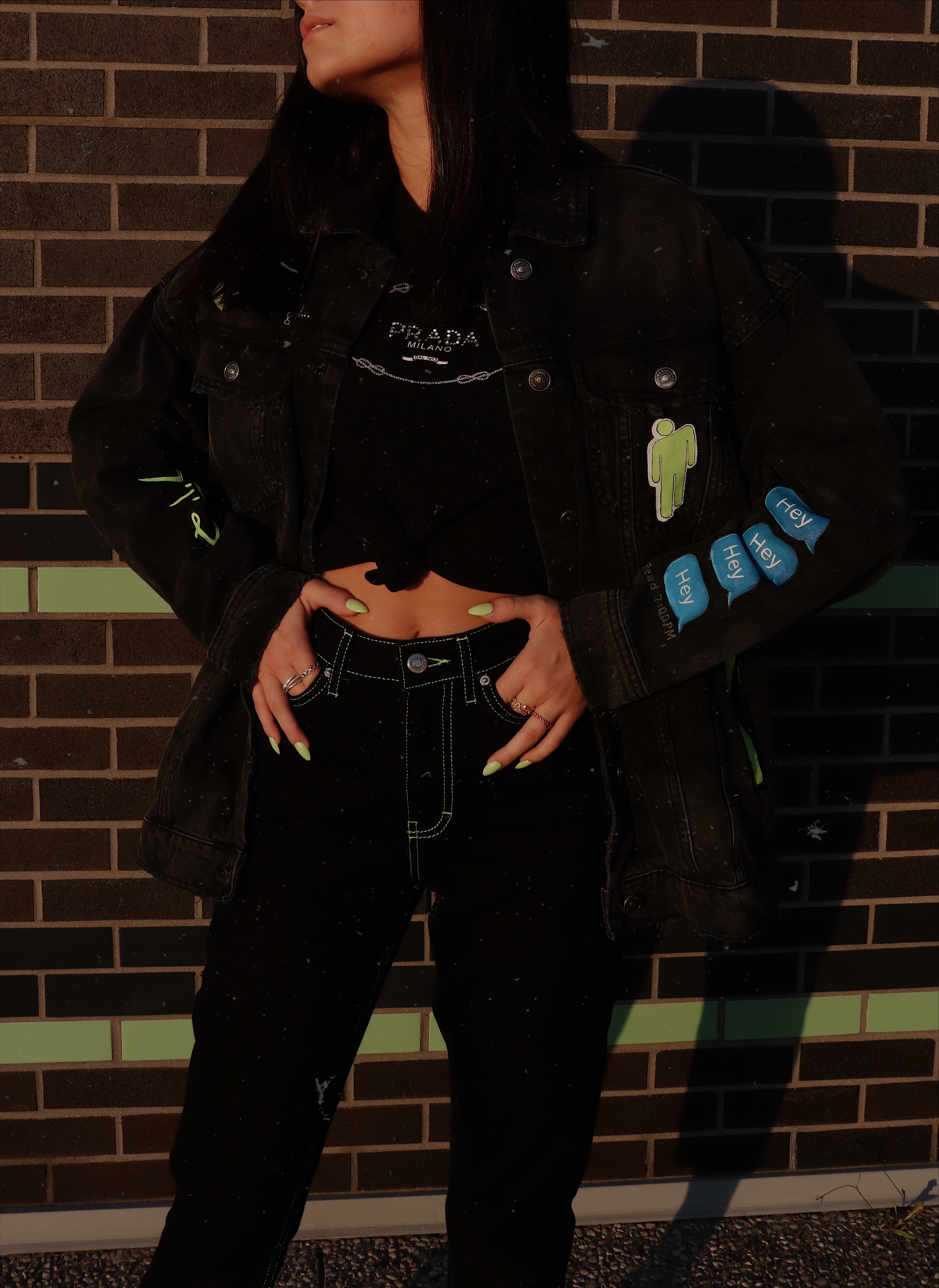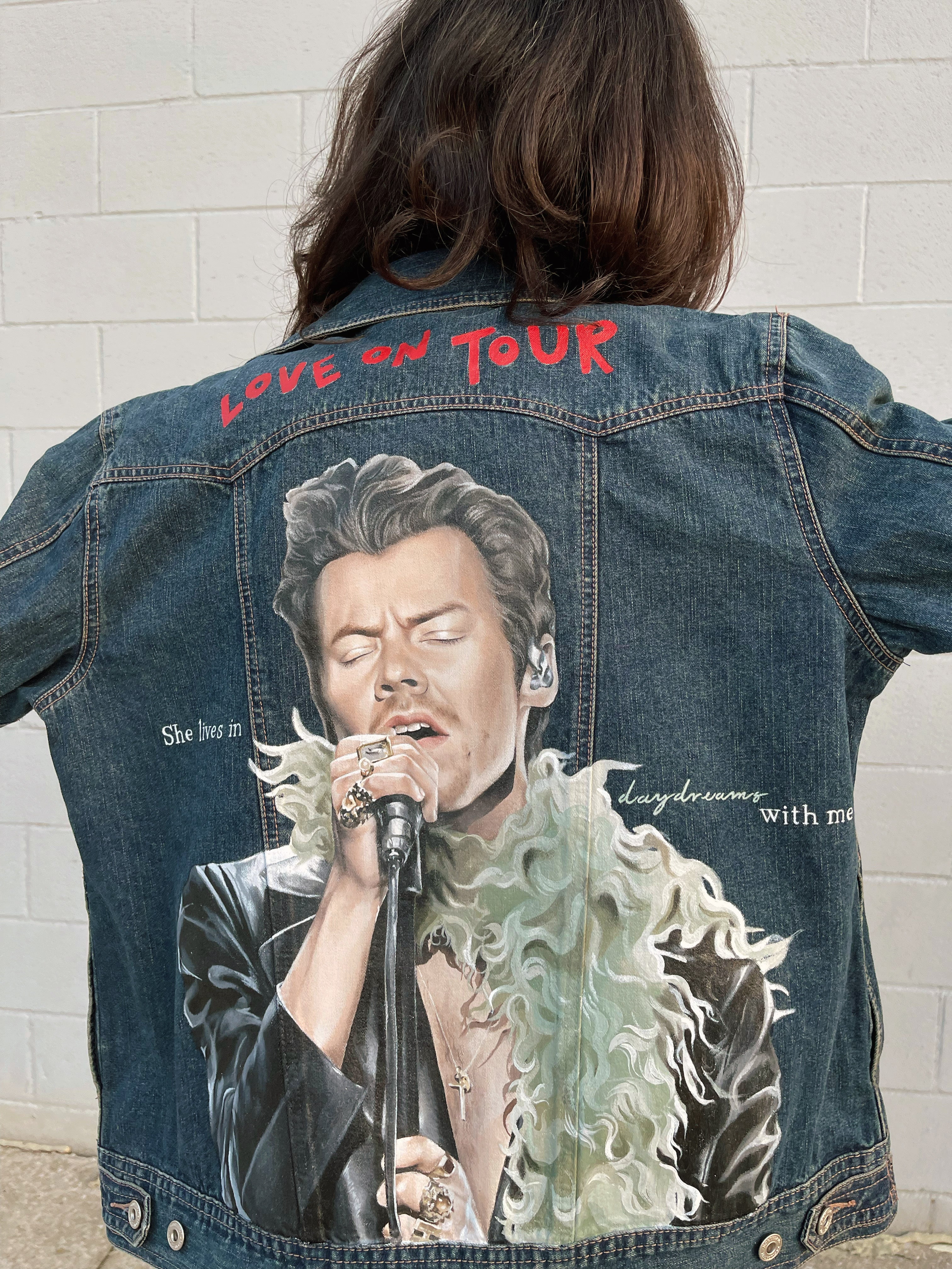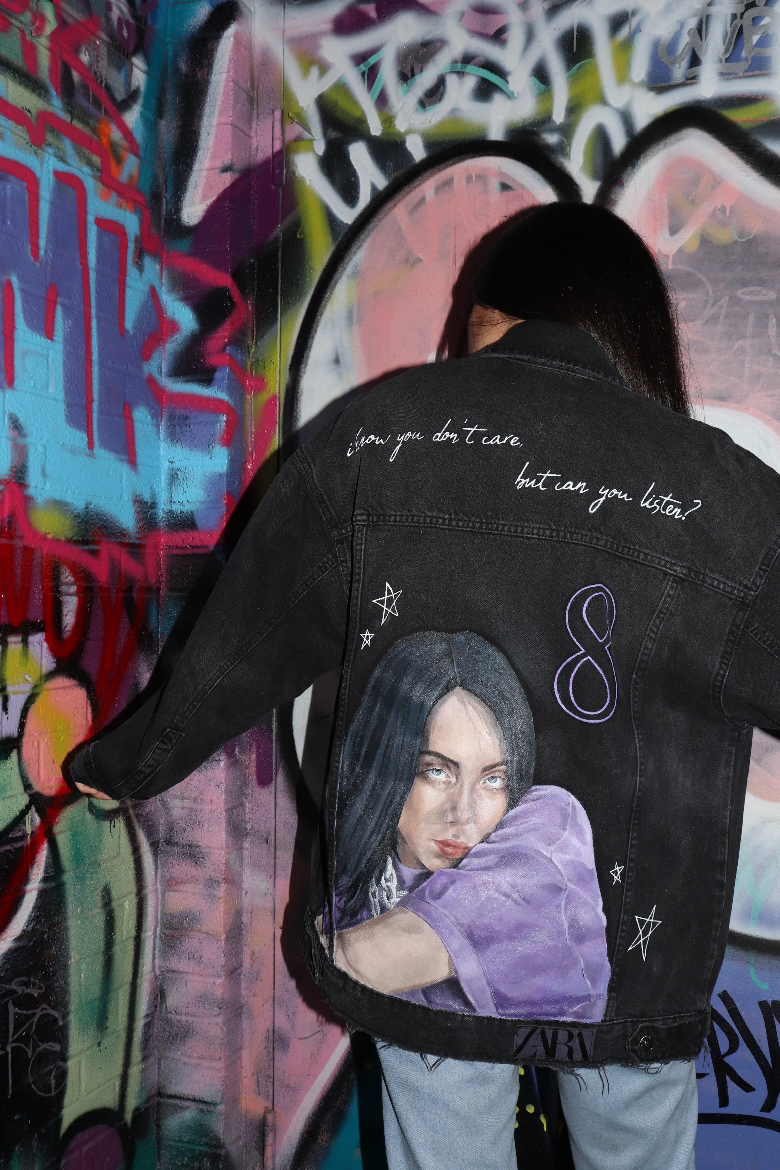 Custom Denim Jackets are a unique and high demand work from Katia. The jackets feature different celebrities and themes. They are usually made to order and specially designed for each client.