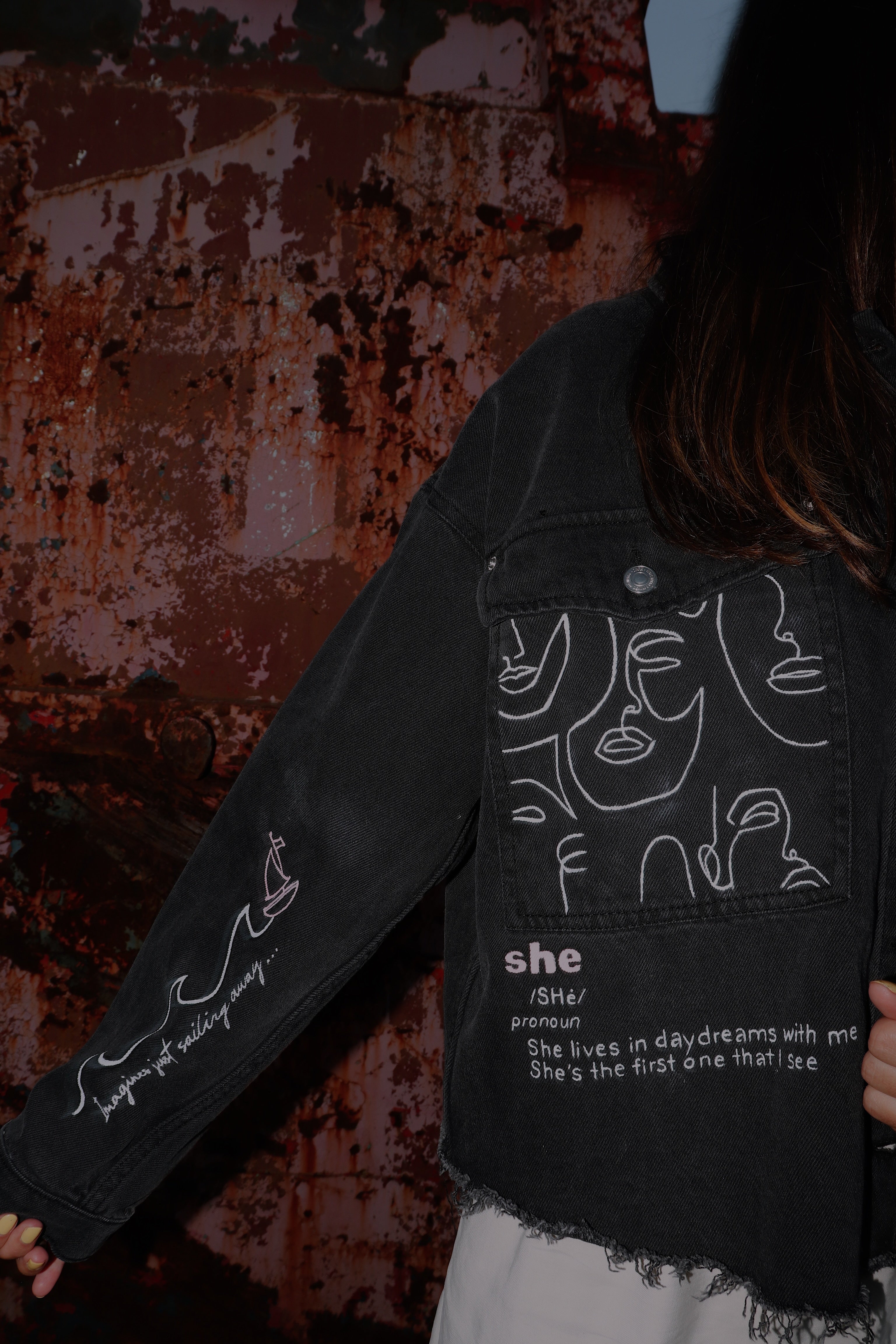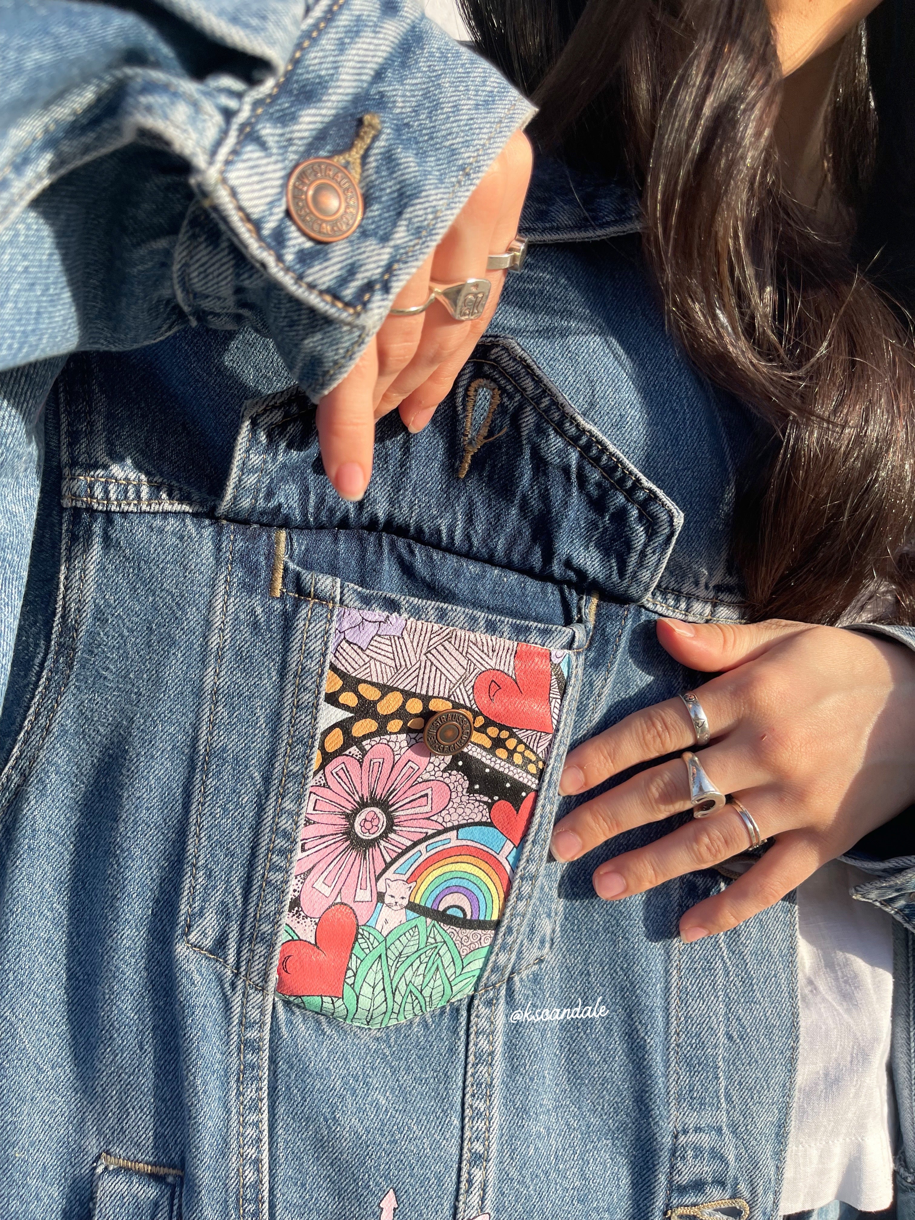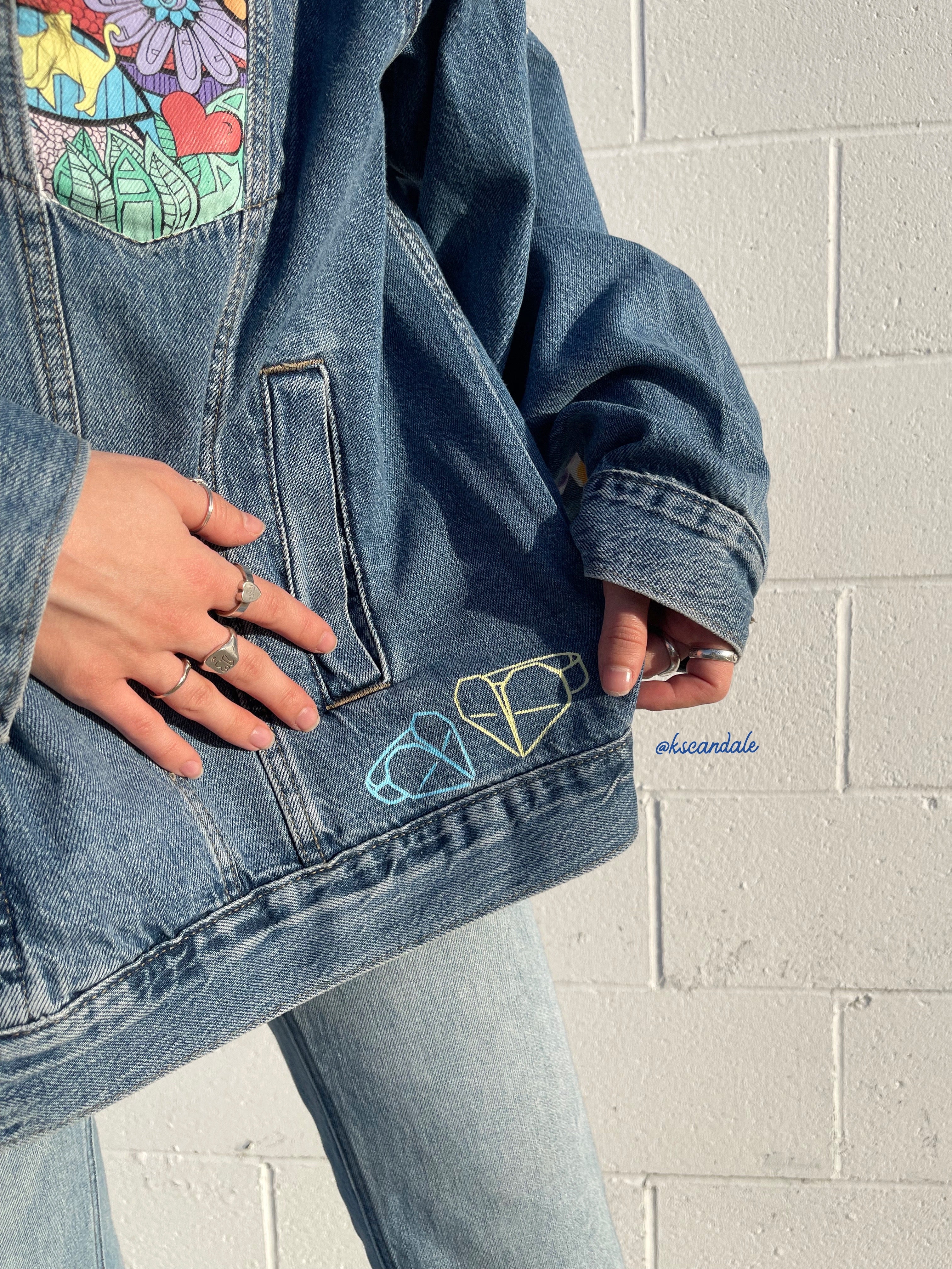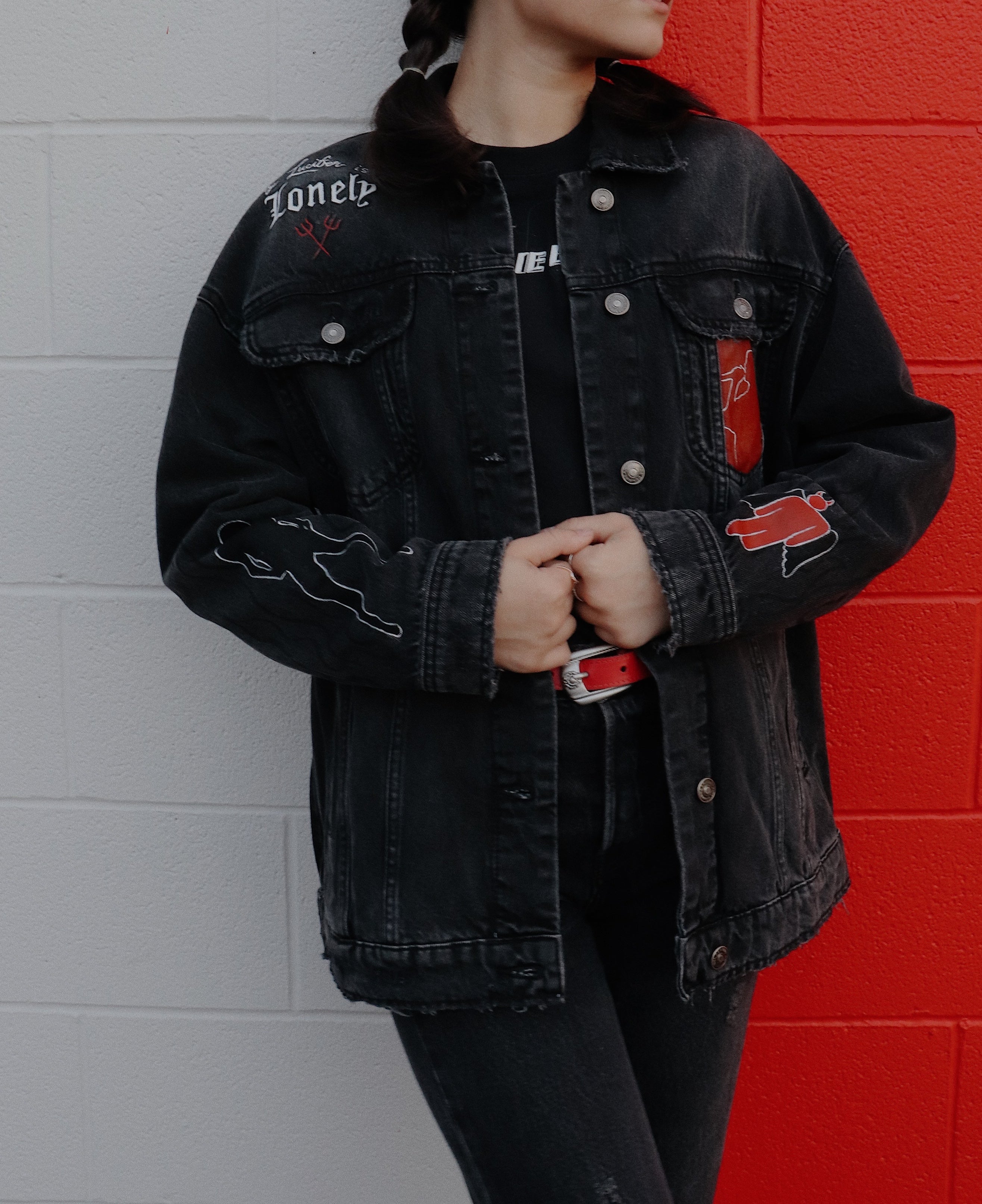 Custom Denim Jackets are a unique and high demand work from Katia. The jackets feature different celebrities and themes. They are usually made to order and specially designed for each client.