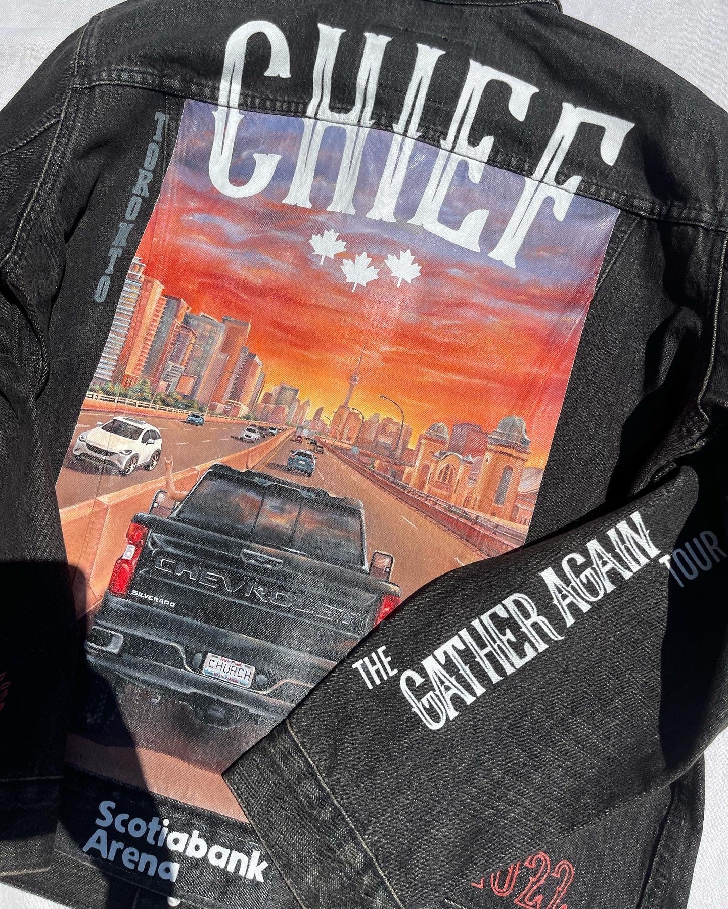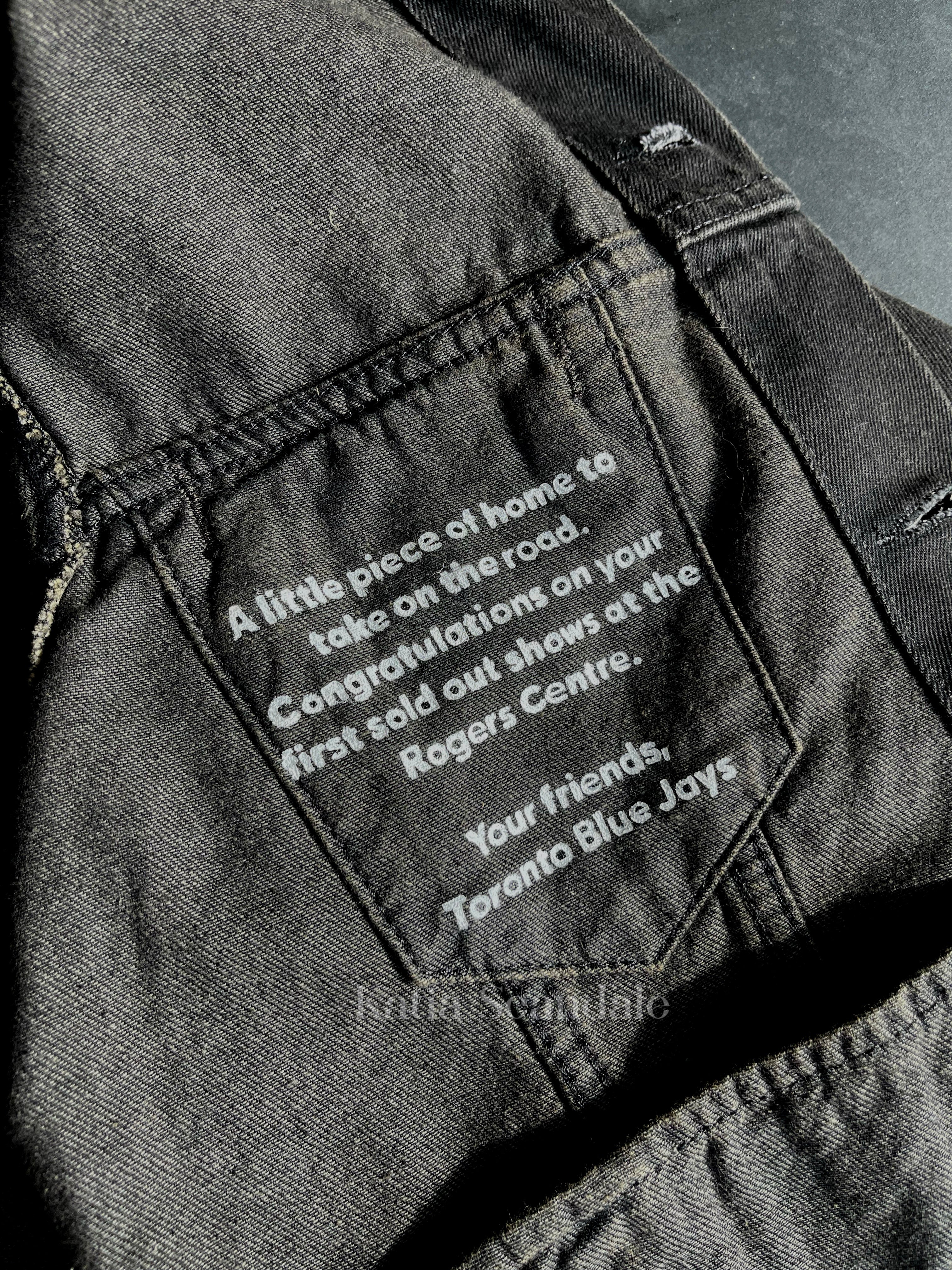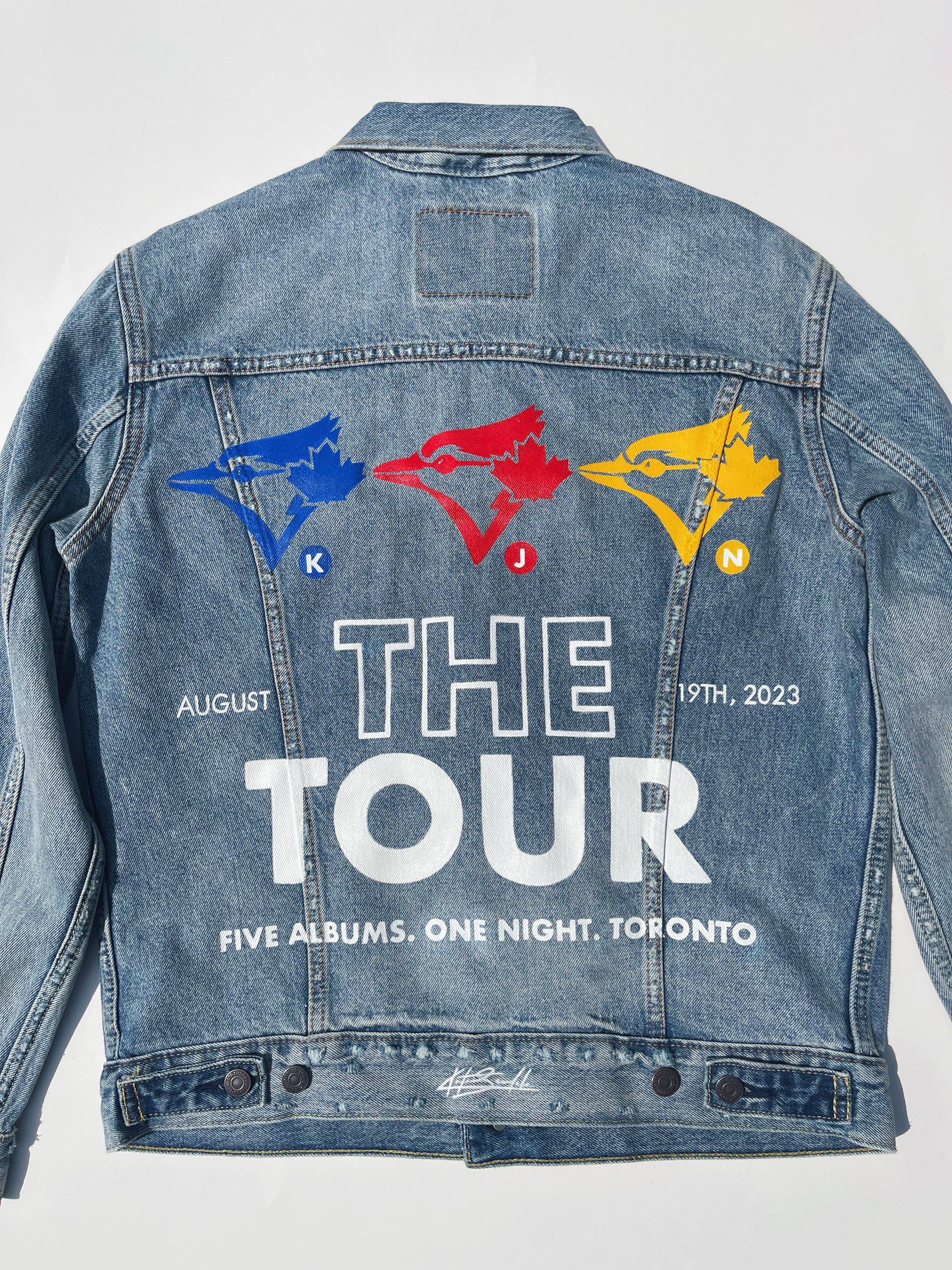 ARTIST GIFT Rogers Centre, Toronto: Custom denim jackets (3) designed and hand-painted by Katia. 2023