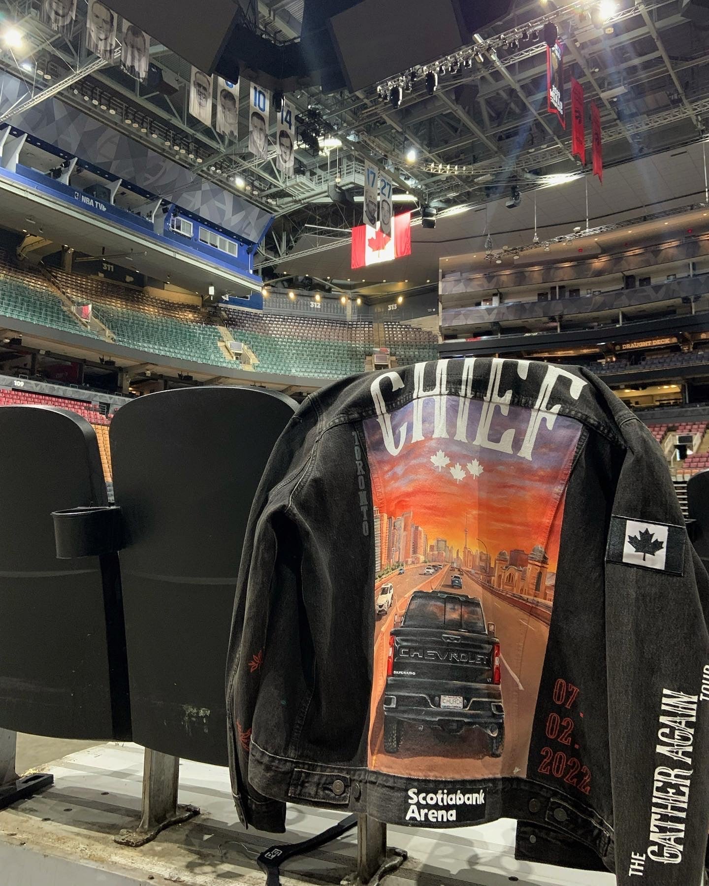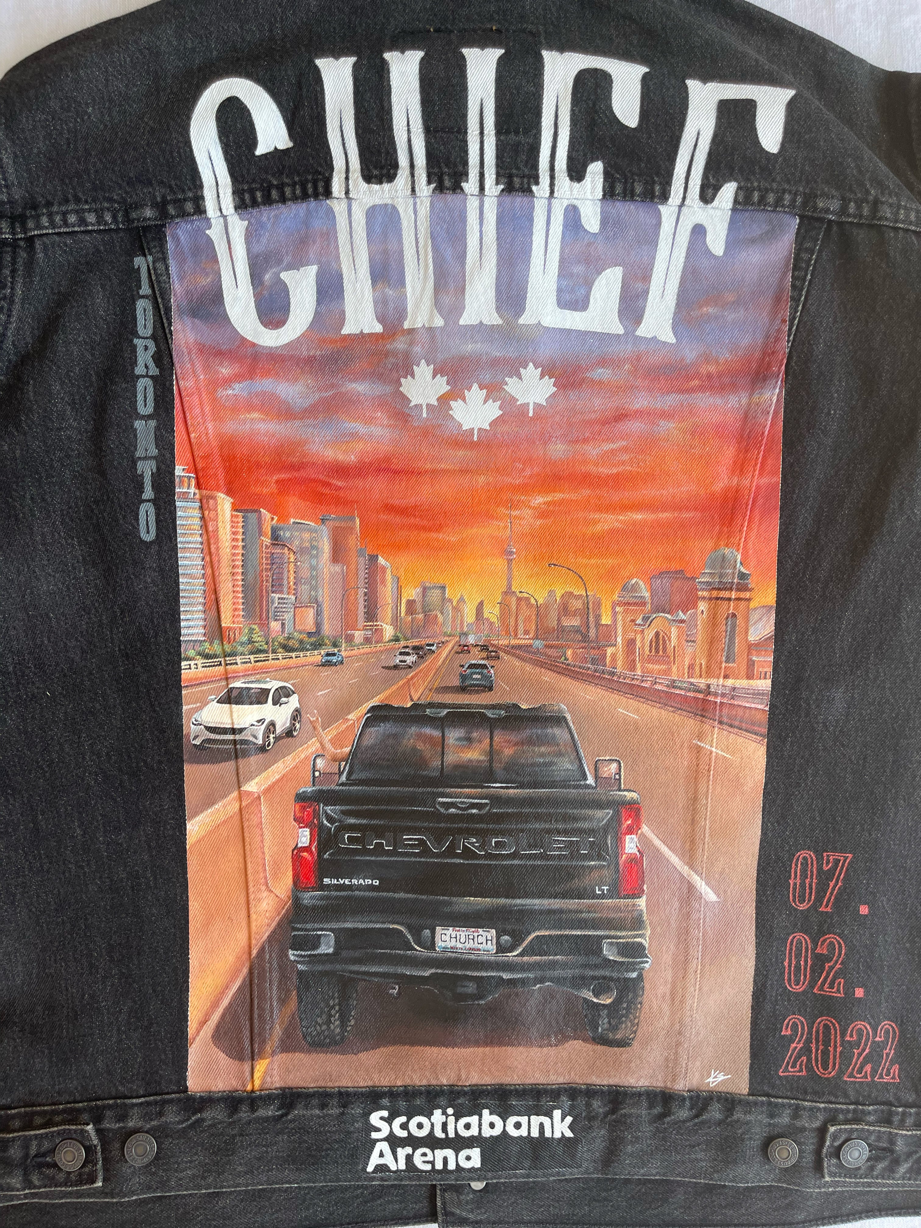 ARTIST GIFT Scotiabank Arena, Toronto: Custom Denim Jacket designed and hand-painted by Katia. 2022