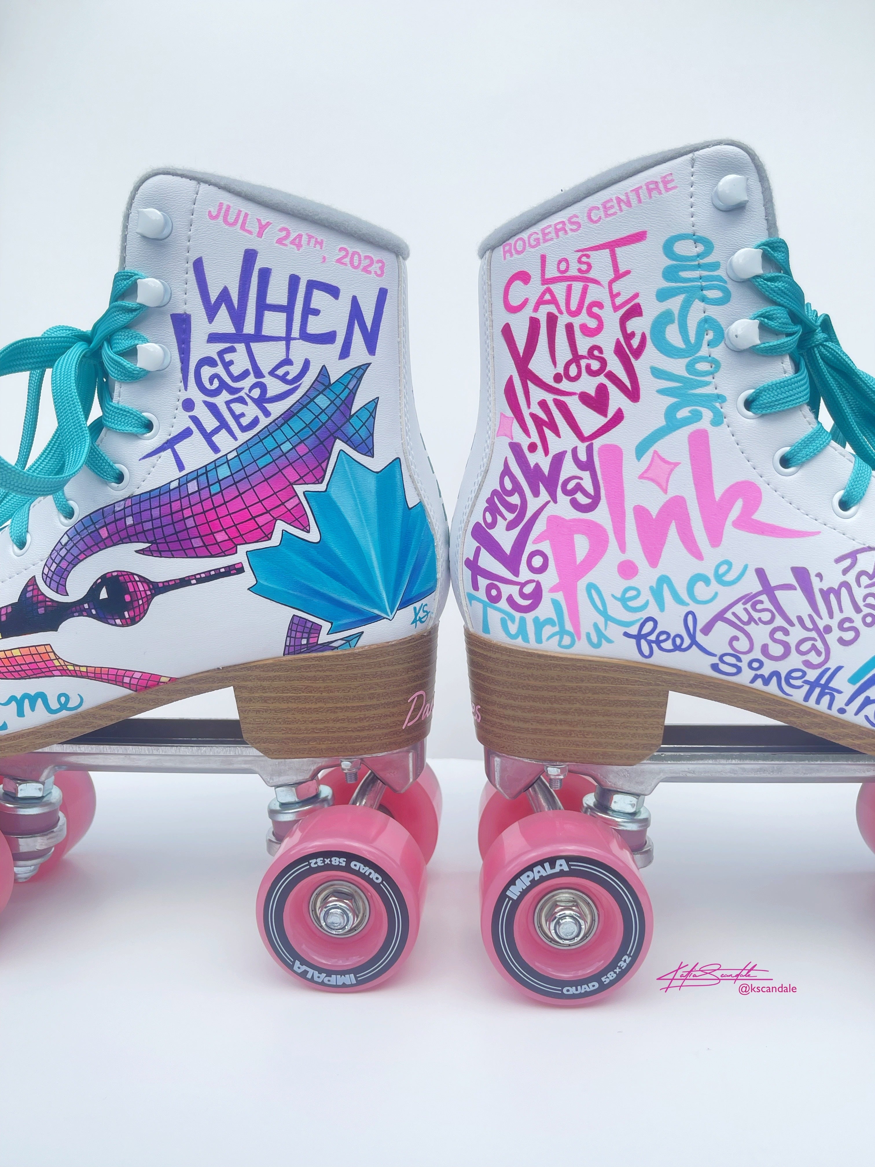 ARTIST GIFT Rogers Centre, Toronto: Custom roller skates hand-painted and designed by Katia. 2023