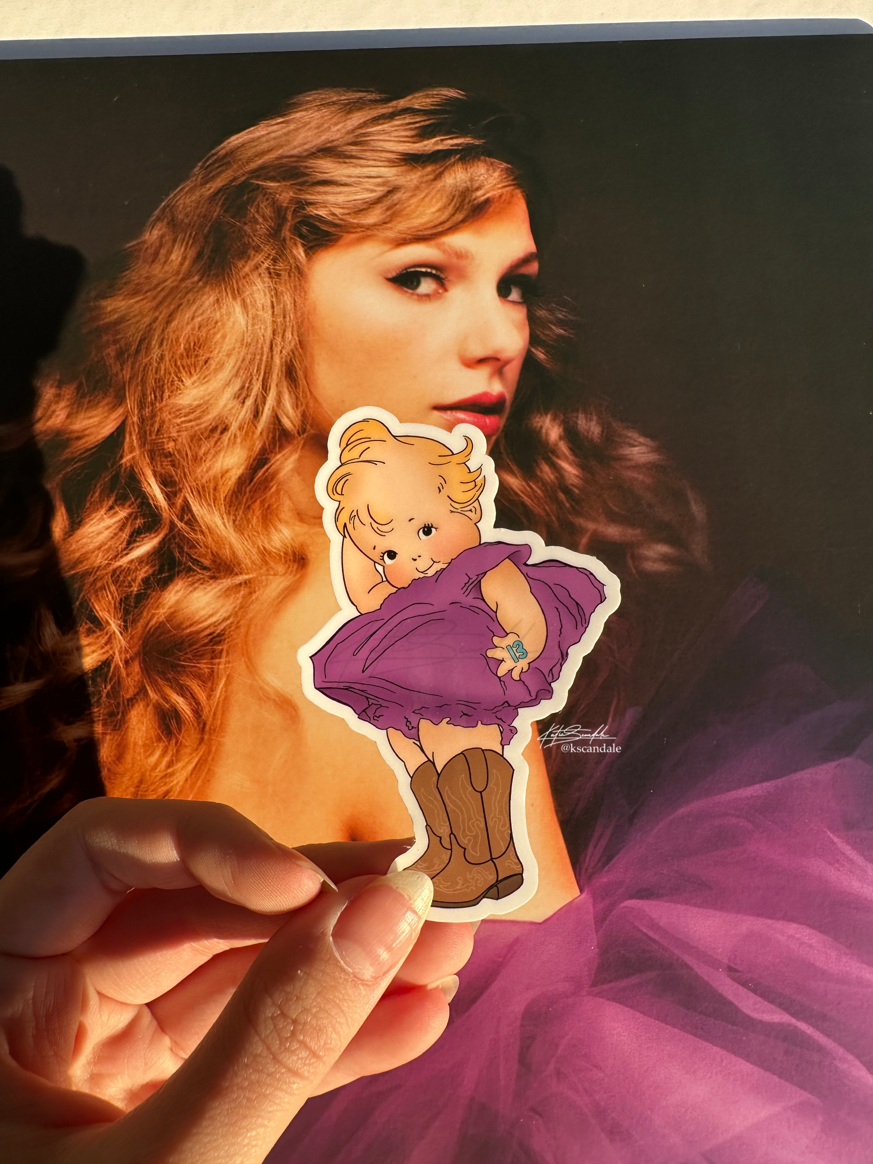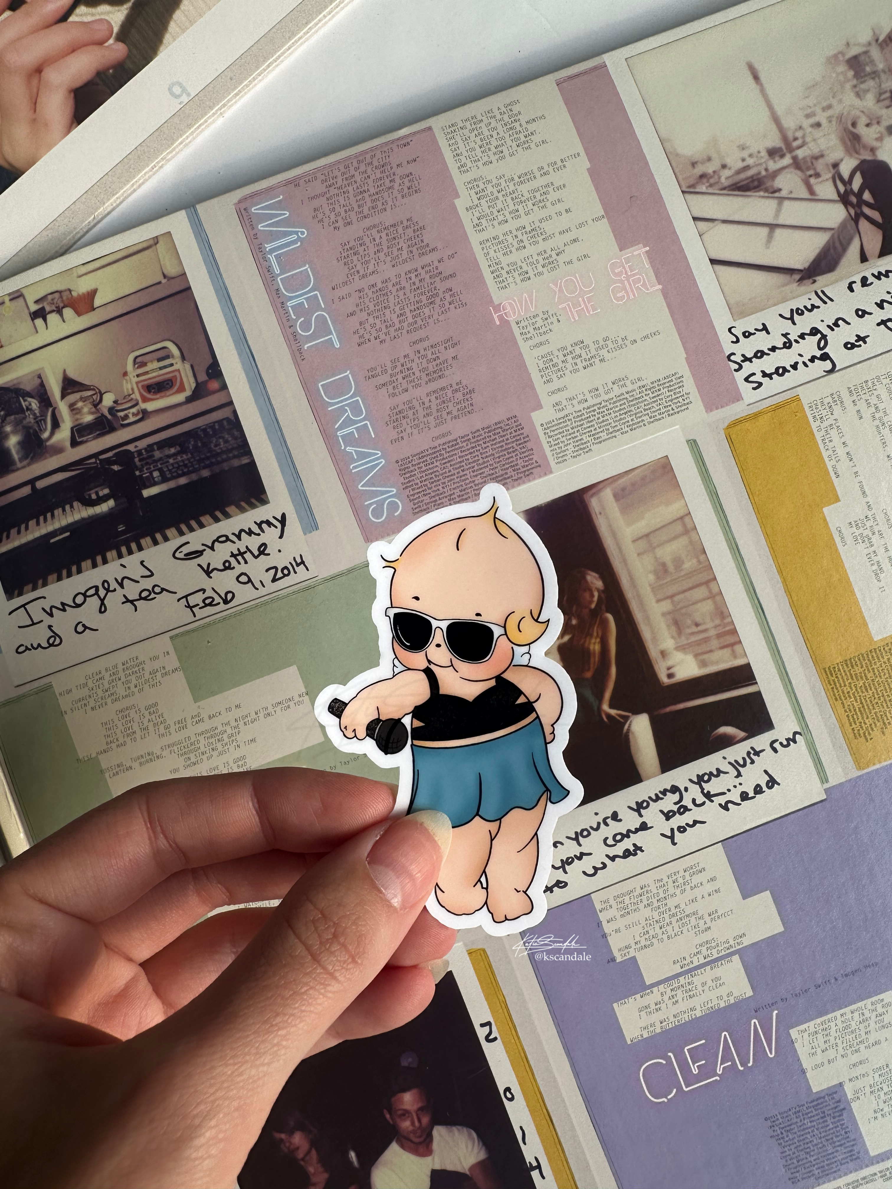 The Kewpie (Taylor's Version) collection features each of Taylor's 11 albums. Each sticker features a Kewpie doll resembling an era