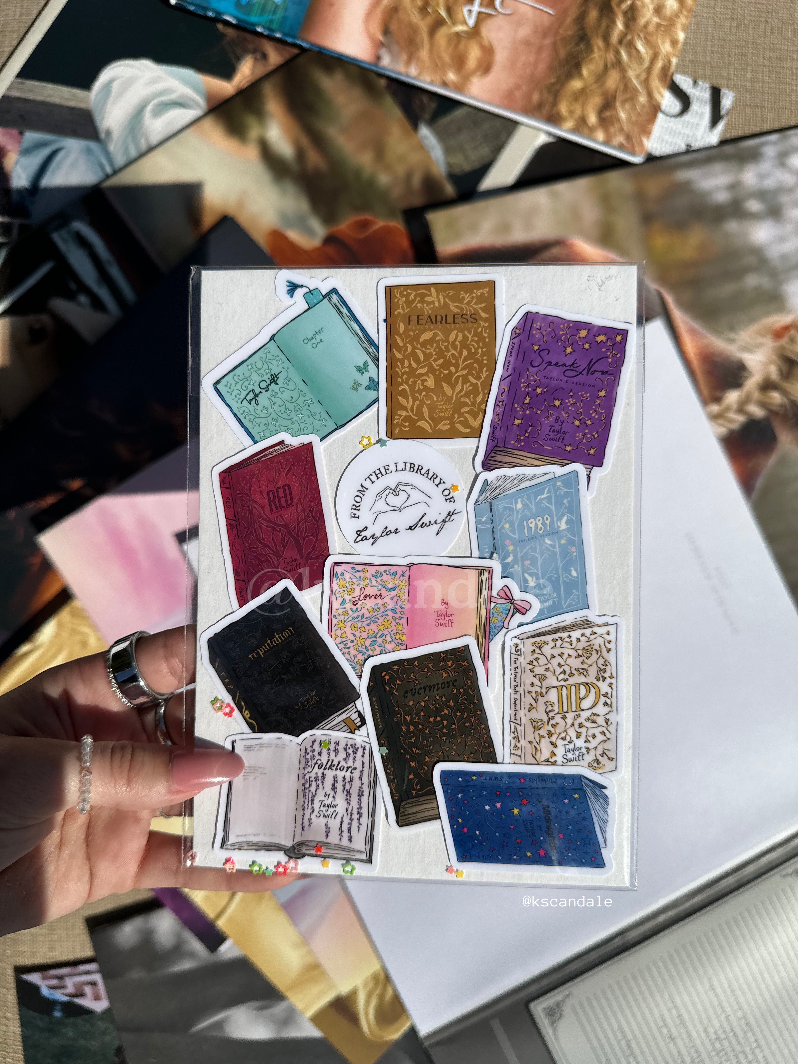 From the library of Taylor Swift is a collection of books as Taylor's 11 albums.